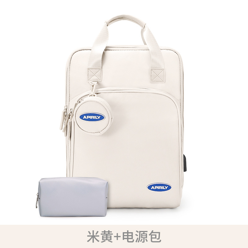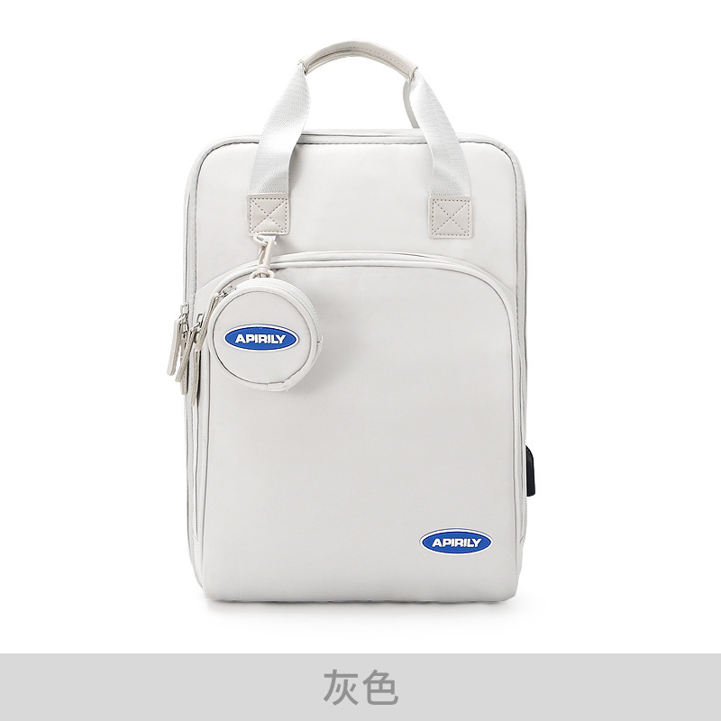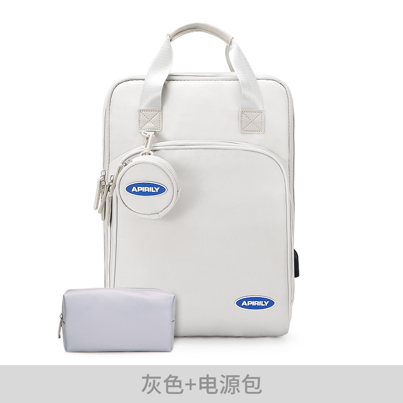 • Fenglin 멀티 컴 파트먼트 백팩 베이지 + 그레이 PU 파워 백