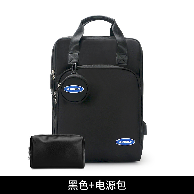 • Fenglin 멀티 컴파트먼트 백팩 블랙 + 블랙 Pu 파워 백