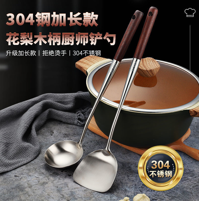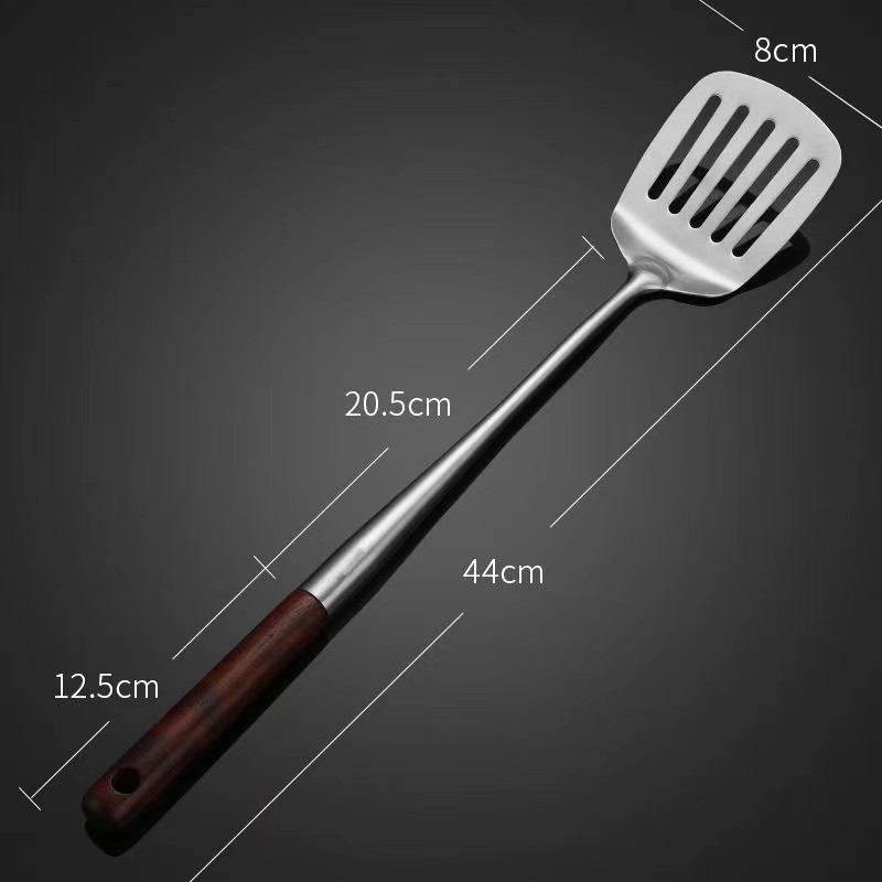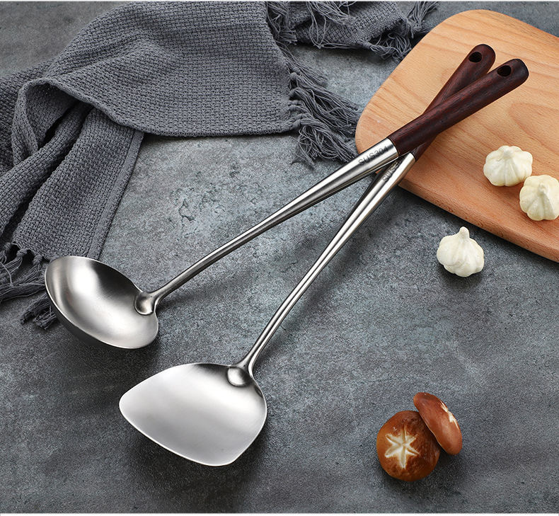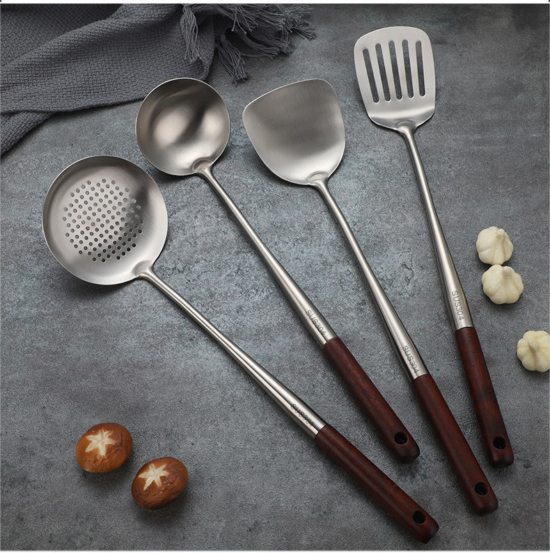 양조 나무 손잡이 304 스테인레스 스틸 튀김 숟가락 주걱 주걱 요리 삽 수프 숟가락 주방 세트 요리사 주걱