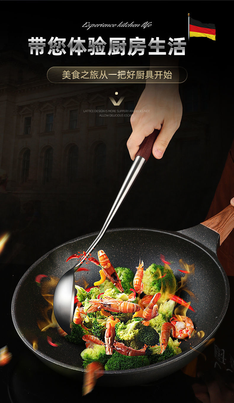 양조 나무 손잡이 304 스테인레스 스틸 튀김 숟가락 주걱 주걱 요리 삽 수프 숟가락 주방 세트 요리사 주걱스토어 가기