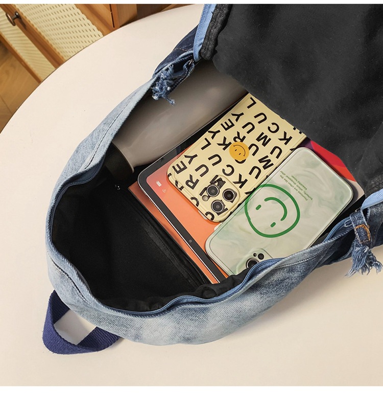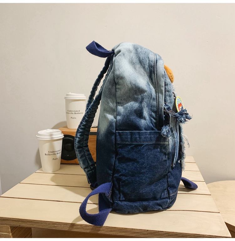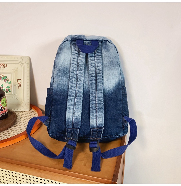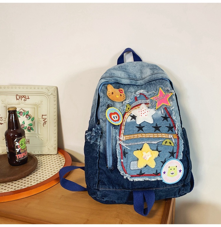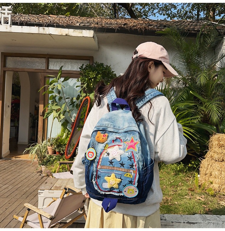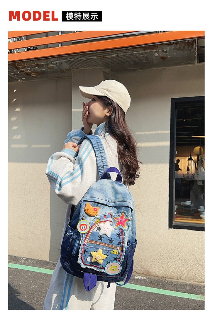 홈 메이드 스타 스티커 데님 그라디언트 컬러 스쿨 백 만화 고양이 달콤한 귀여운 올 매치 백팩 초등 및 중등 학생스토어 가기