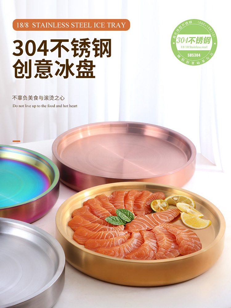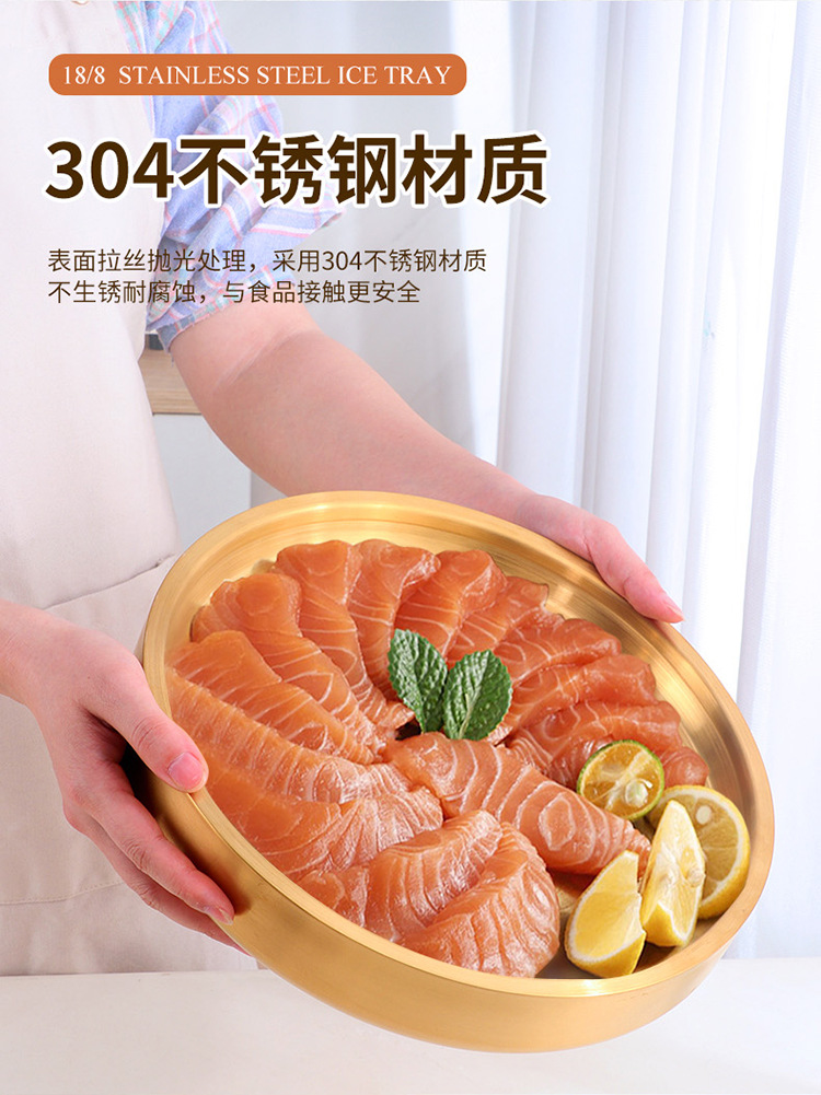304 스테인레스 스틸 냉동 아이스 트레이 워터블 핫 포트 아이스 트레이 식품 초밥 연어 아이스 트레이 사시미 해산물 트레이