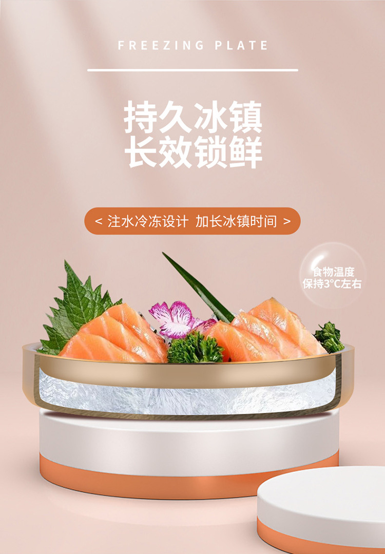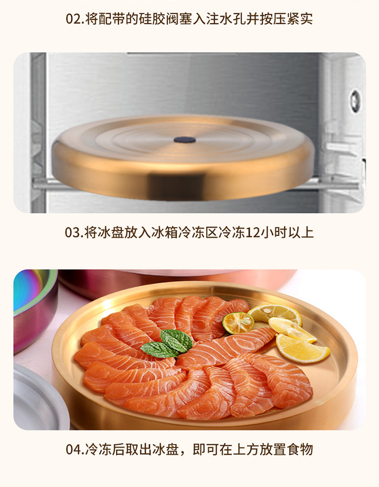 304 스테인레스 스틸 냉동 아이스 트레이 워터블 핫 포트 아이스 트레이 식품 초밥 연어 아이스 트레이 사시미 해산물 트레이스토어 가기