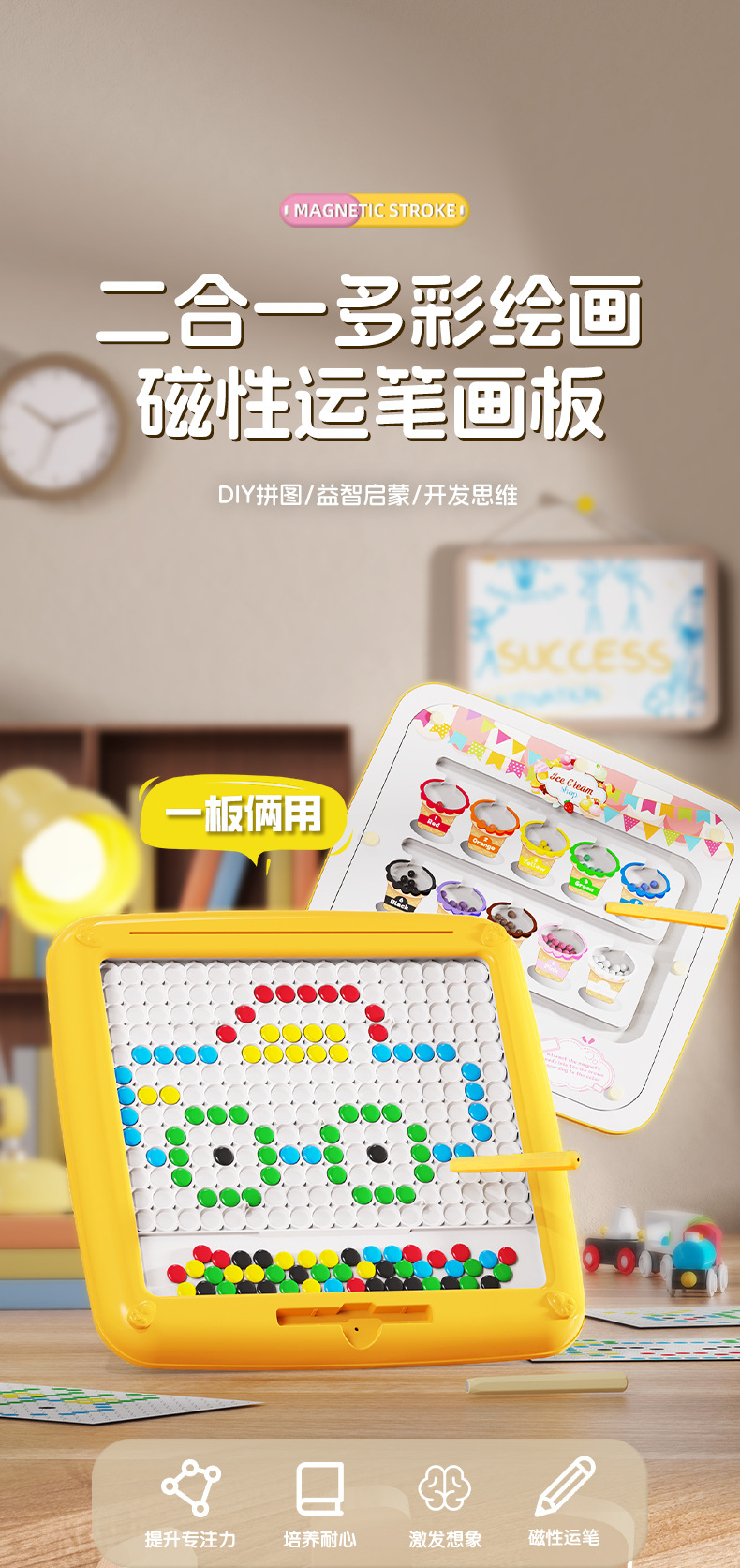 아마존 2 대 1 마그네틱 펜 드로잉 보드 마그네틱 스톤 컨트롤 펜 어린이 DIY 드로잉 북 앨범 교육 장난감스토어 가기