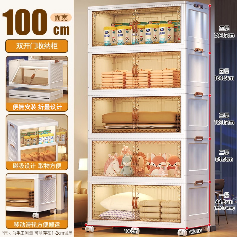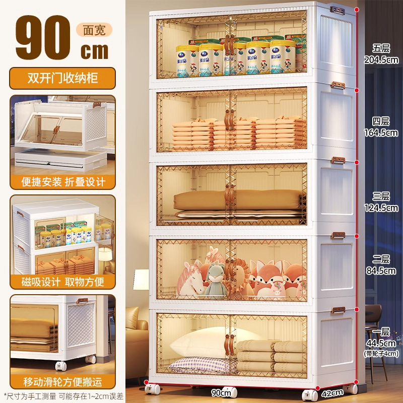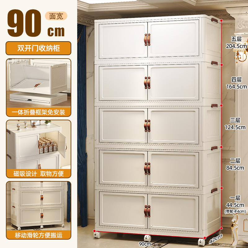 스토리지 박스 더블 도어 스토리지 캐비닛 접이식 플라스틱 옷장 크림 스타일 의류 보관 상자 홈 침실 사물함