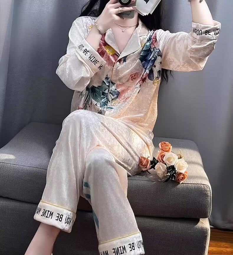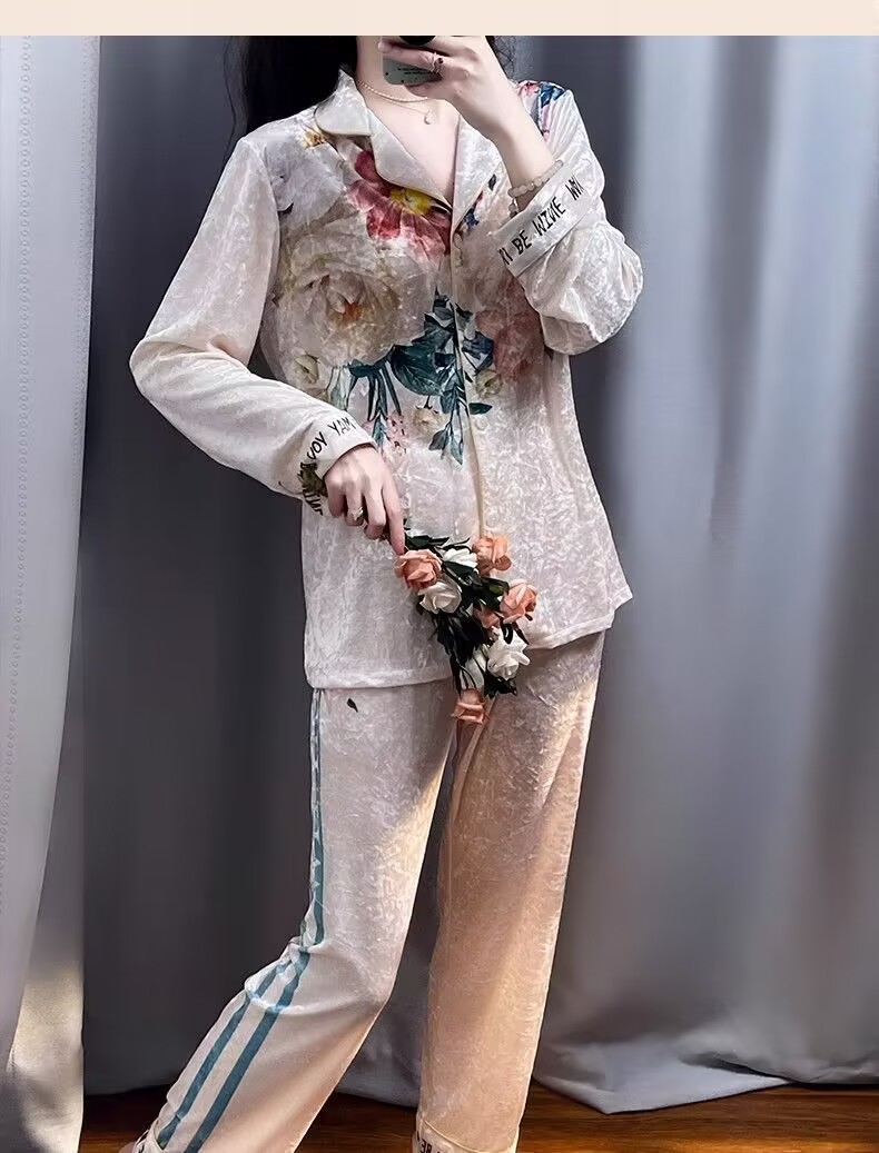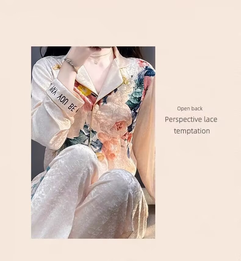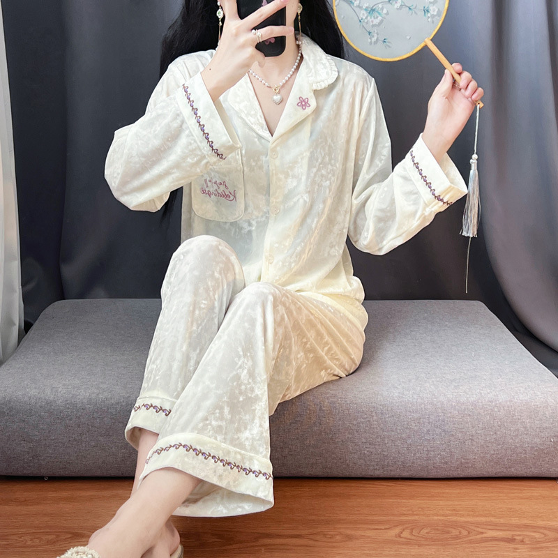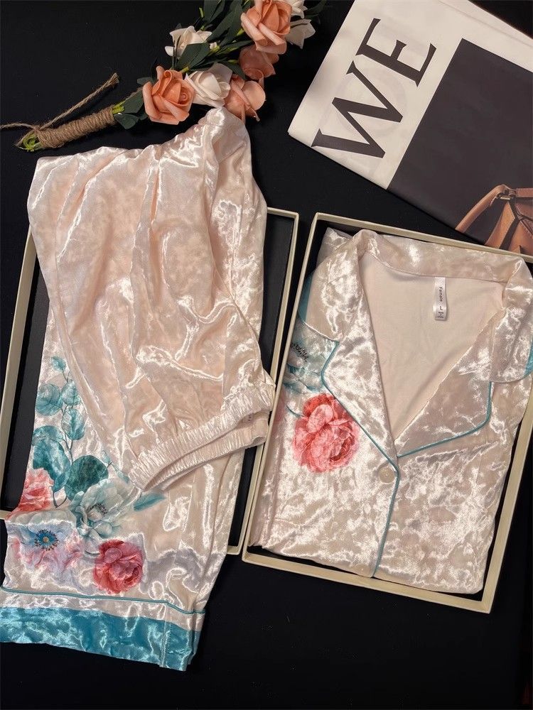 뜨거운 가을과 겨울 골드 다이아몬드 벨벳 파자마 여성 카디건 모란 고급 골드 벨벳 따뜻한 가정복 세트