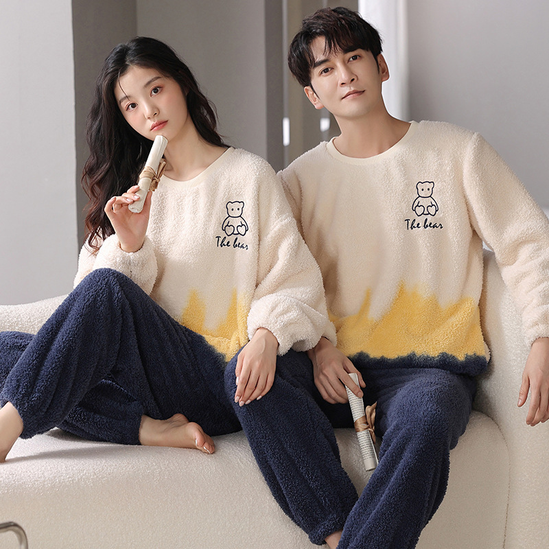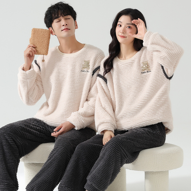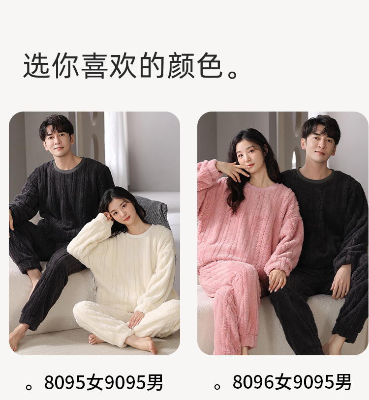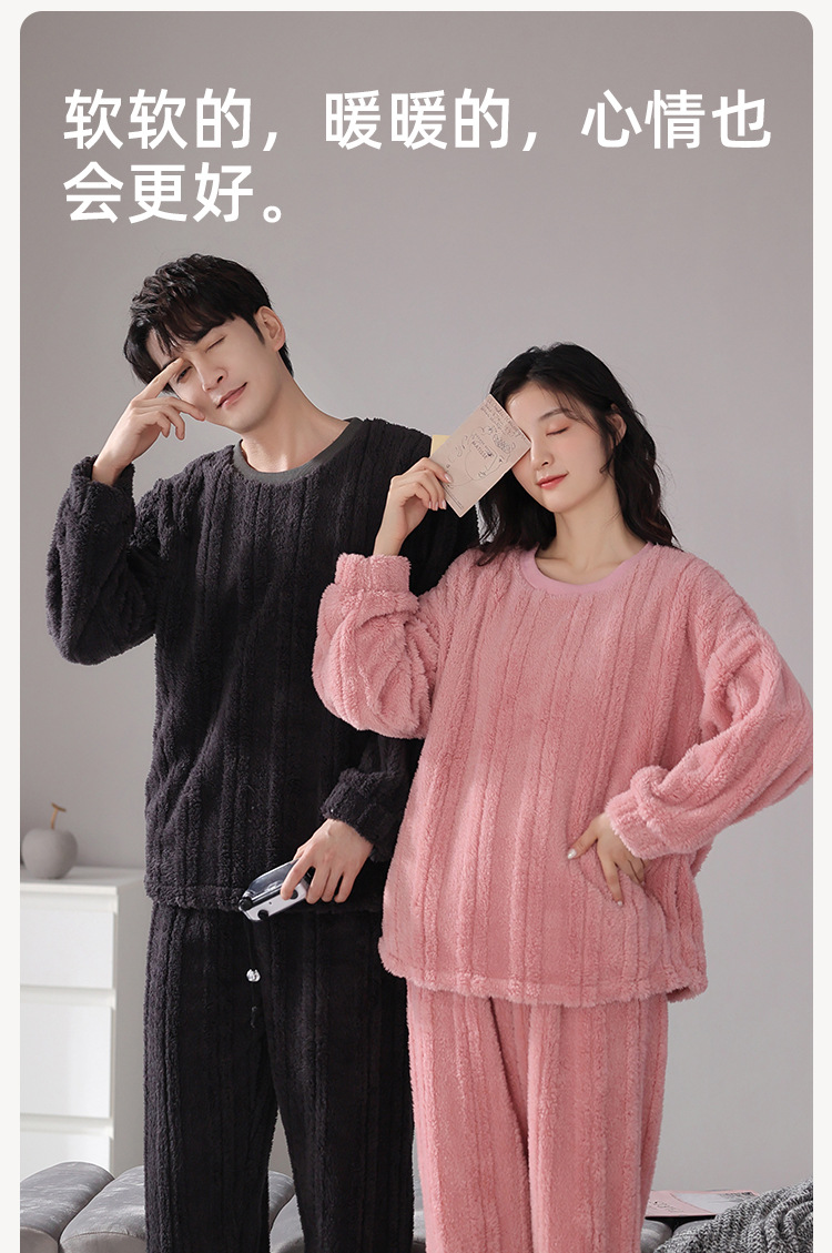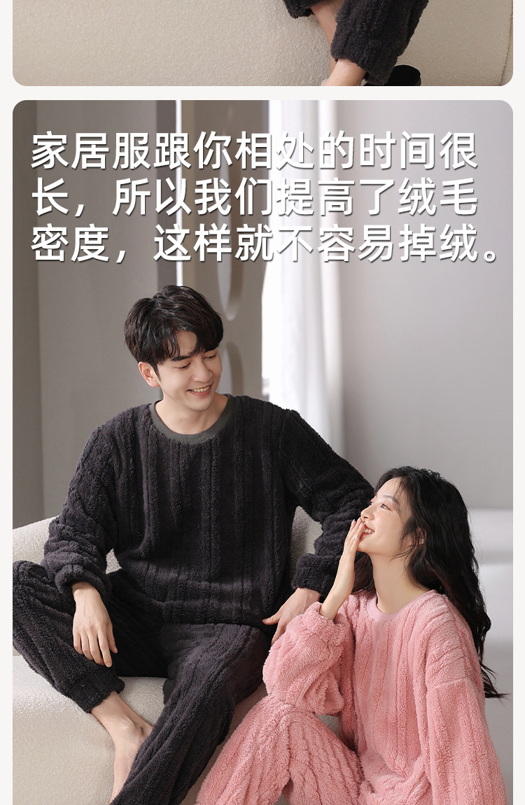 커플 잠옷 겨울 산호 양털 겨울 남자 여자 두껍게 기모 플란넬 둥근 목 홈 착용 가을과 겨울스토어 가기