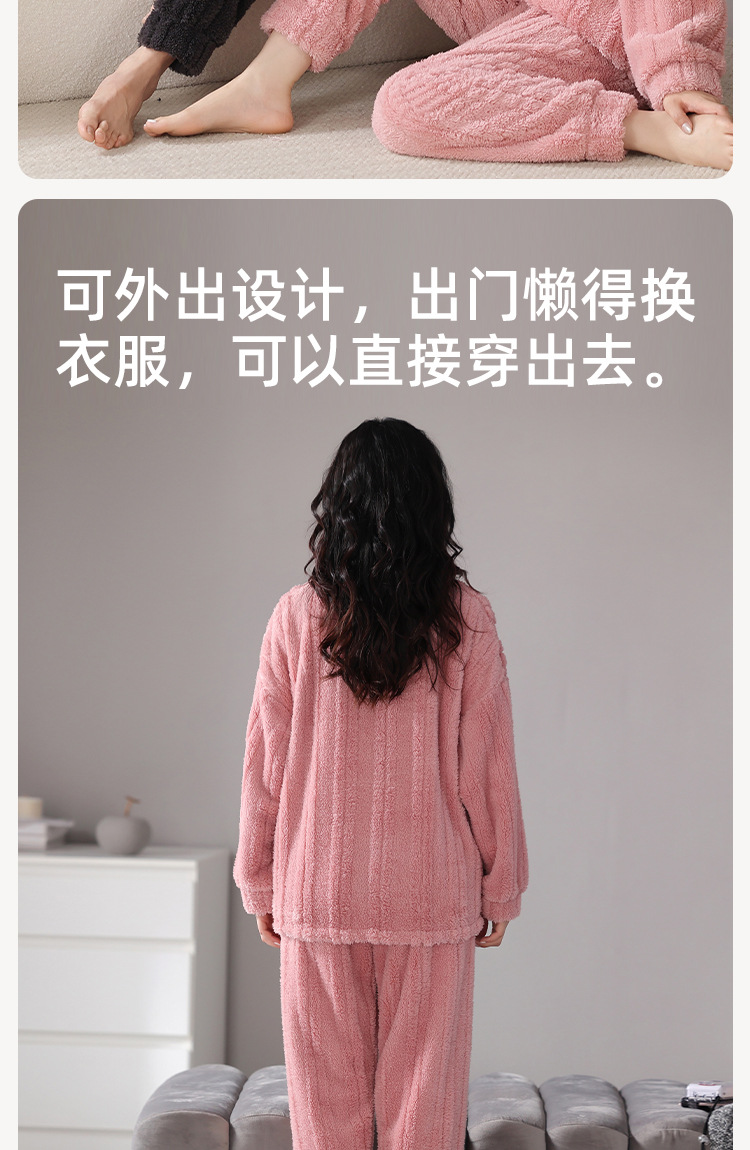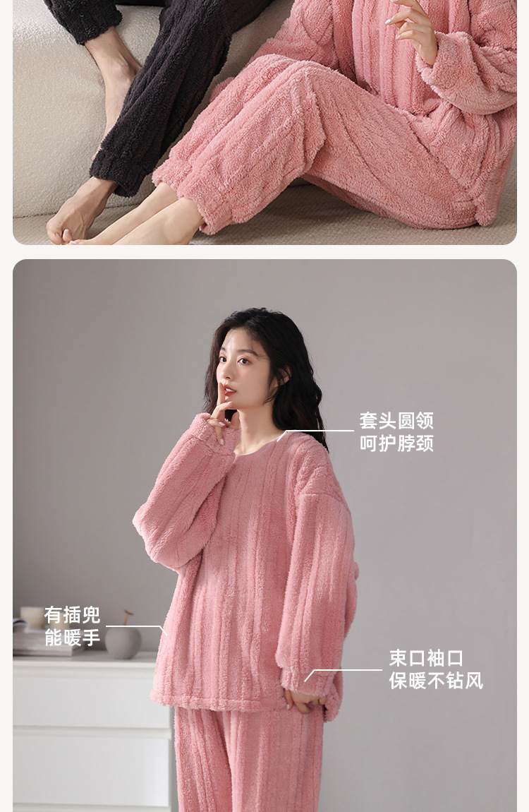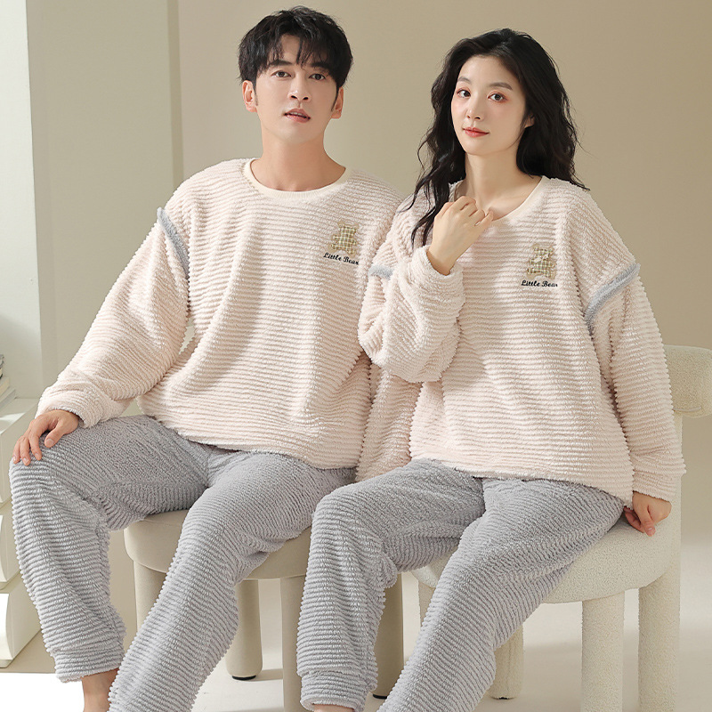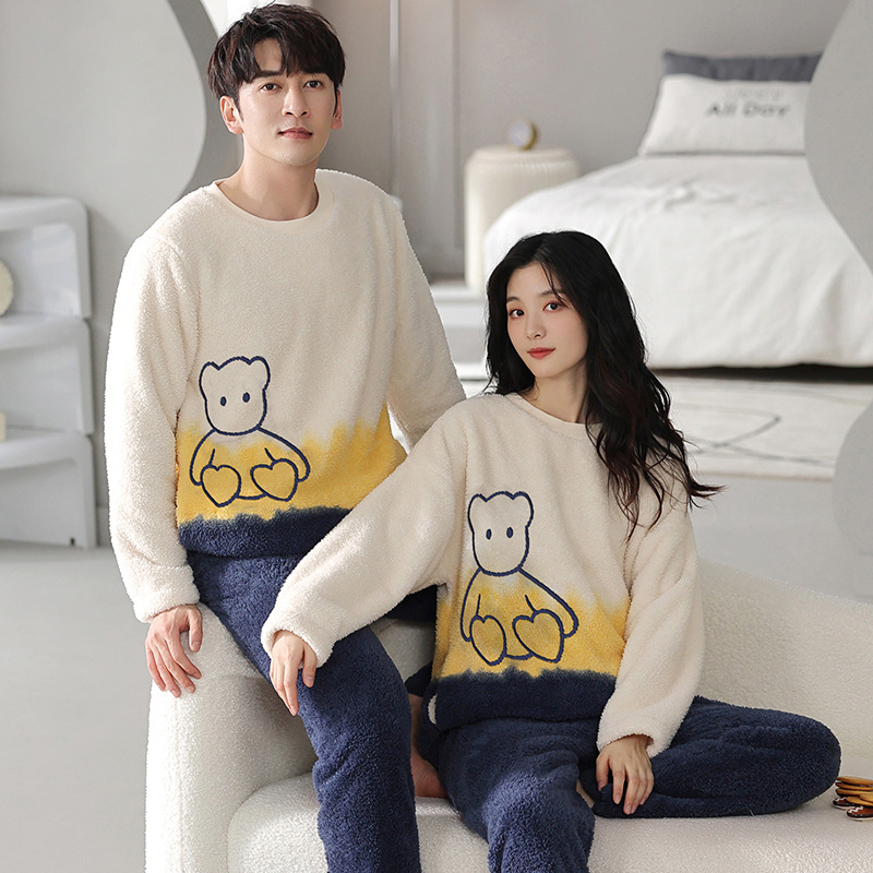 커플 잠옷 겨울 산호 양털 겨울 남자 여자 두껍게 기모 플란넬 둥근 목 홈 착용 가을과 겨울스토어 가기