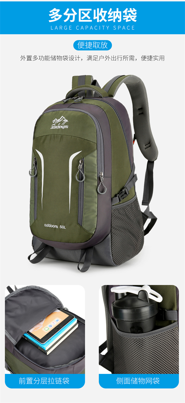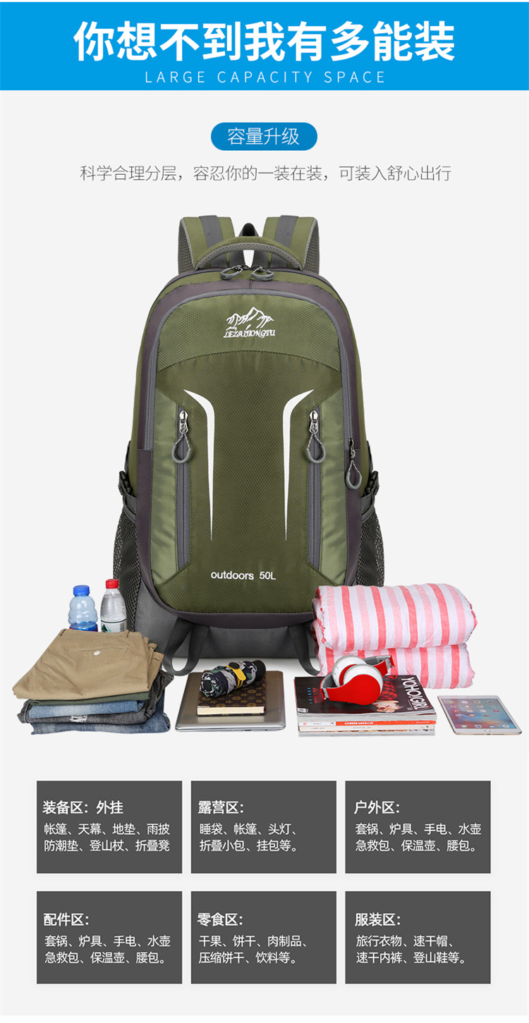 새로운 야외 하이킹 배낭 남성 대용량 등산 가방 인쇄 로고 다기능 여행 가방 스포츠 가방 도매스토어 가기