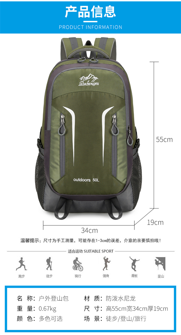 새로운 야외 하이킹 배낭 남성 대용량 등산 가방 인쇄 로고 다기능 여행 가방 스포츠 가방 도매