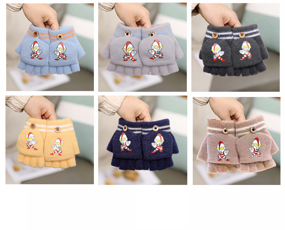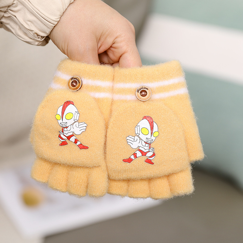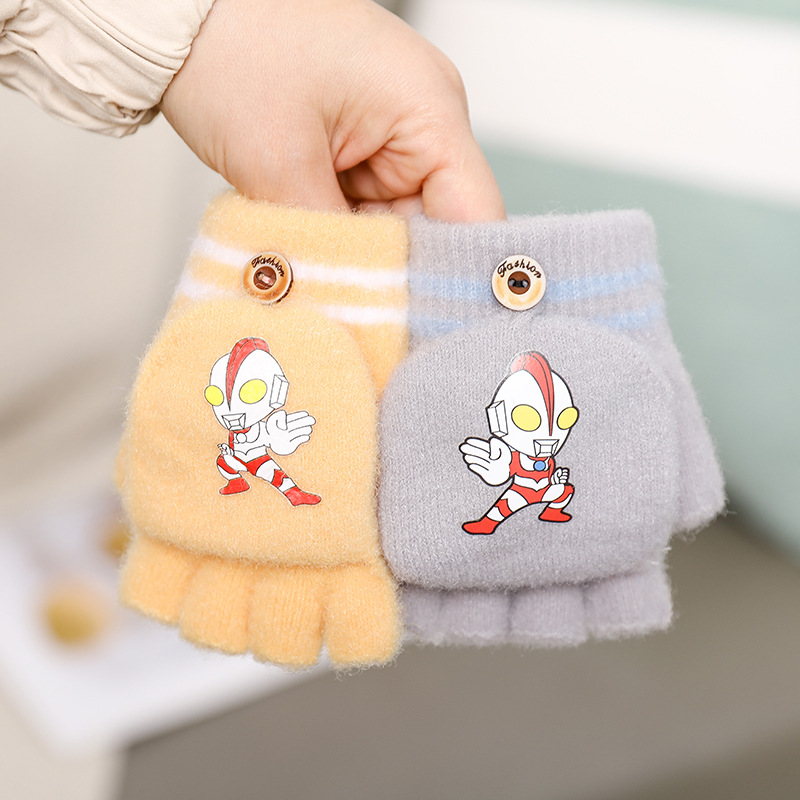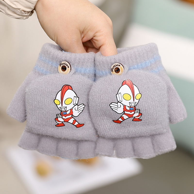 어린이 장갑 겨울 소년 소녀 따뜻한 쓰기 반 손가락 뒤집기 손가락 장갑 아기 기모 두꺼운 학생 장갑스토어 가기