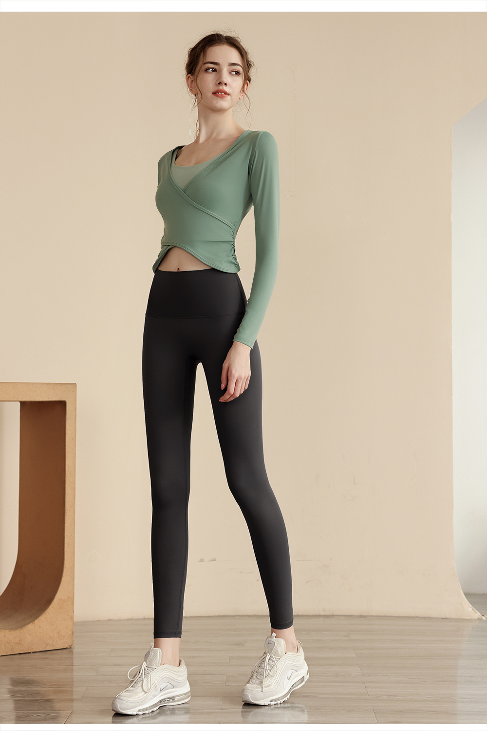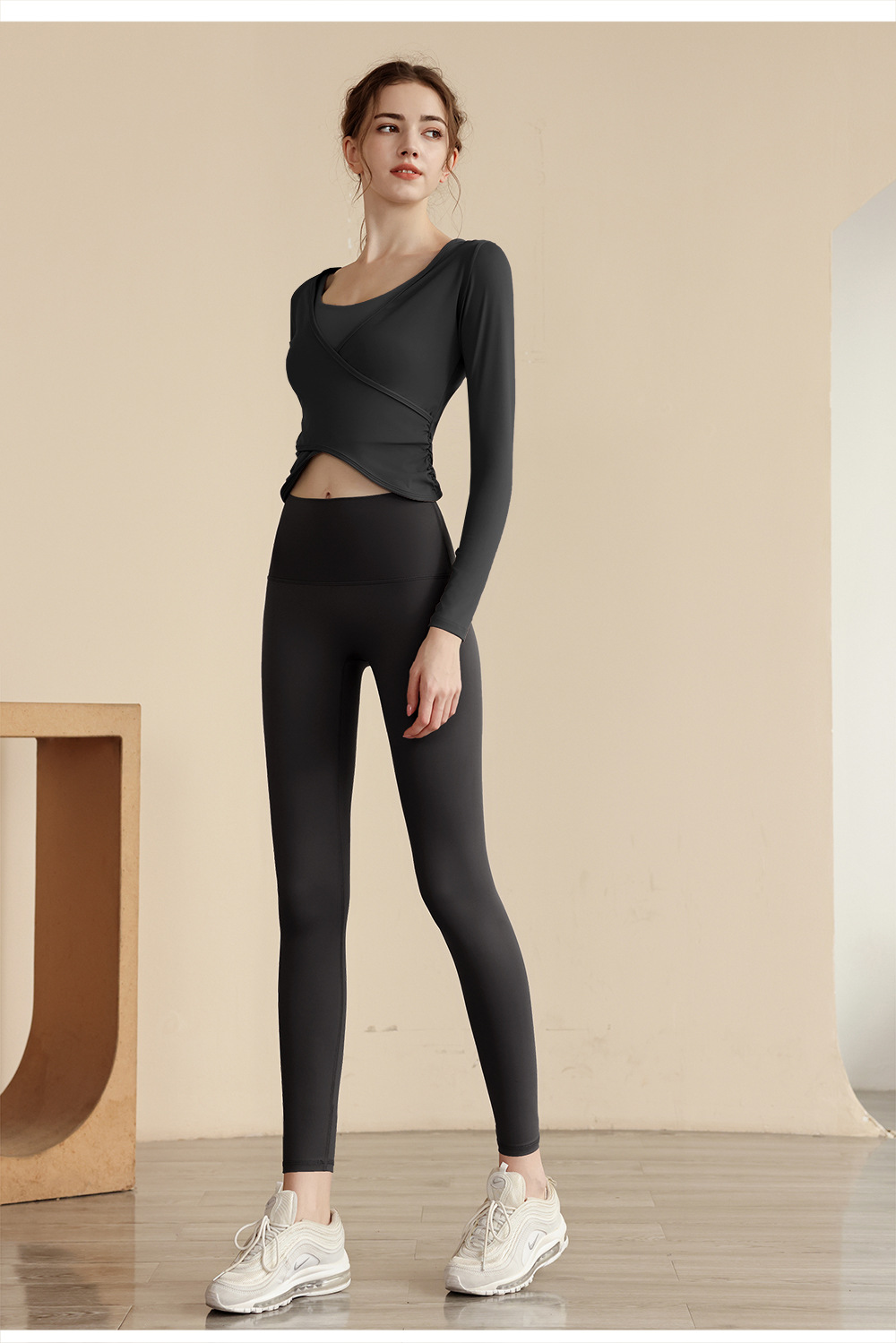 23023 가을 새로운 요가 긴팔 오버셔츠 나일론 벌거 벗은 편안한 패브릭 피트니스 옷 머리카락 한 세대스토어 가기