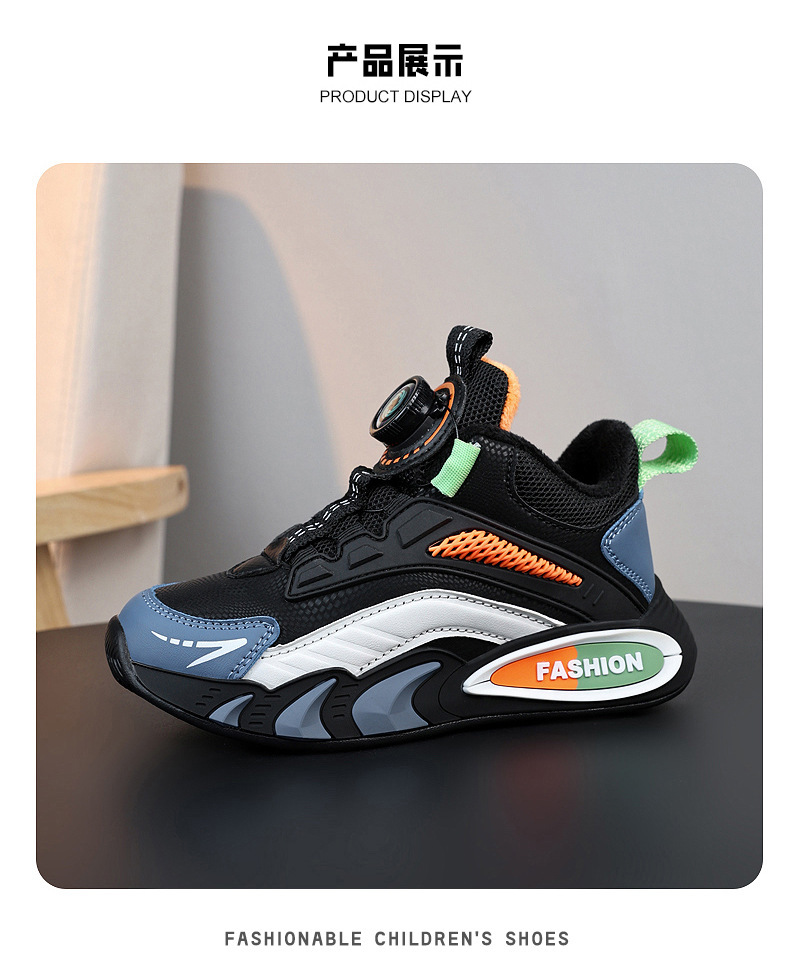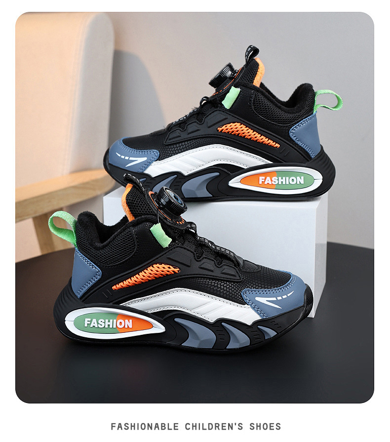 남학생 신발 겨울 양면 기모 따뜻한 회전 버클 어린이 운동화 중 · 대형 어린이 농구 신발 남학생 면화