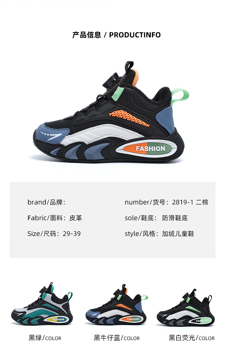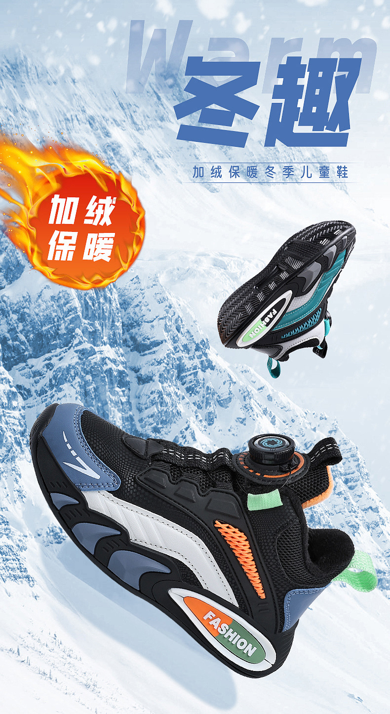 남학생 신발 겨울 양면 기모 따뜻한 회전 버클 어린이 운동화 중 · 대형 어린이 농구 신발 남학생 면화스토어 가기