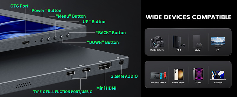 16 인치 휴대용 디스플레이 4K 서브 스크린 노트북 컴퓨터 휴대 전화 확장 화면 스위치 외부 화면