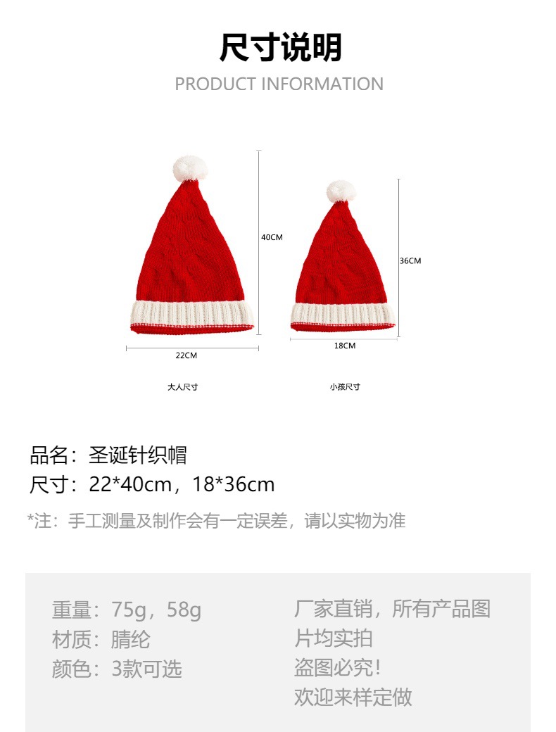 크리스마스 모자 성인 어린이 모피 공 니트 모자 휴일 따뜻한 모자 유럽과 미국의 뜨거운 판매 국경 간 재고 공장 직접 판매스토어 가기