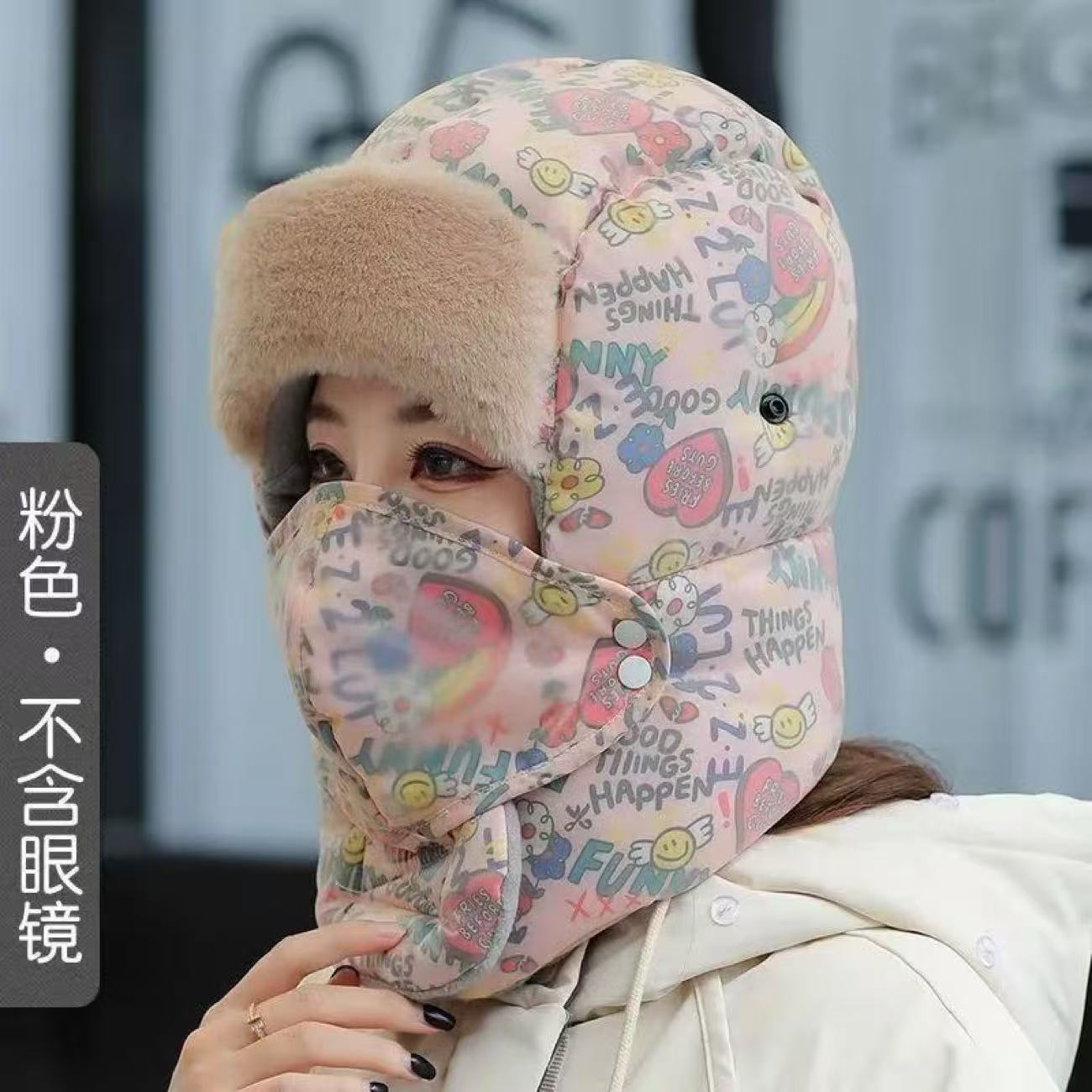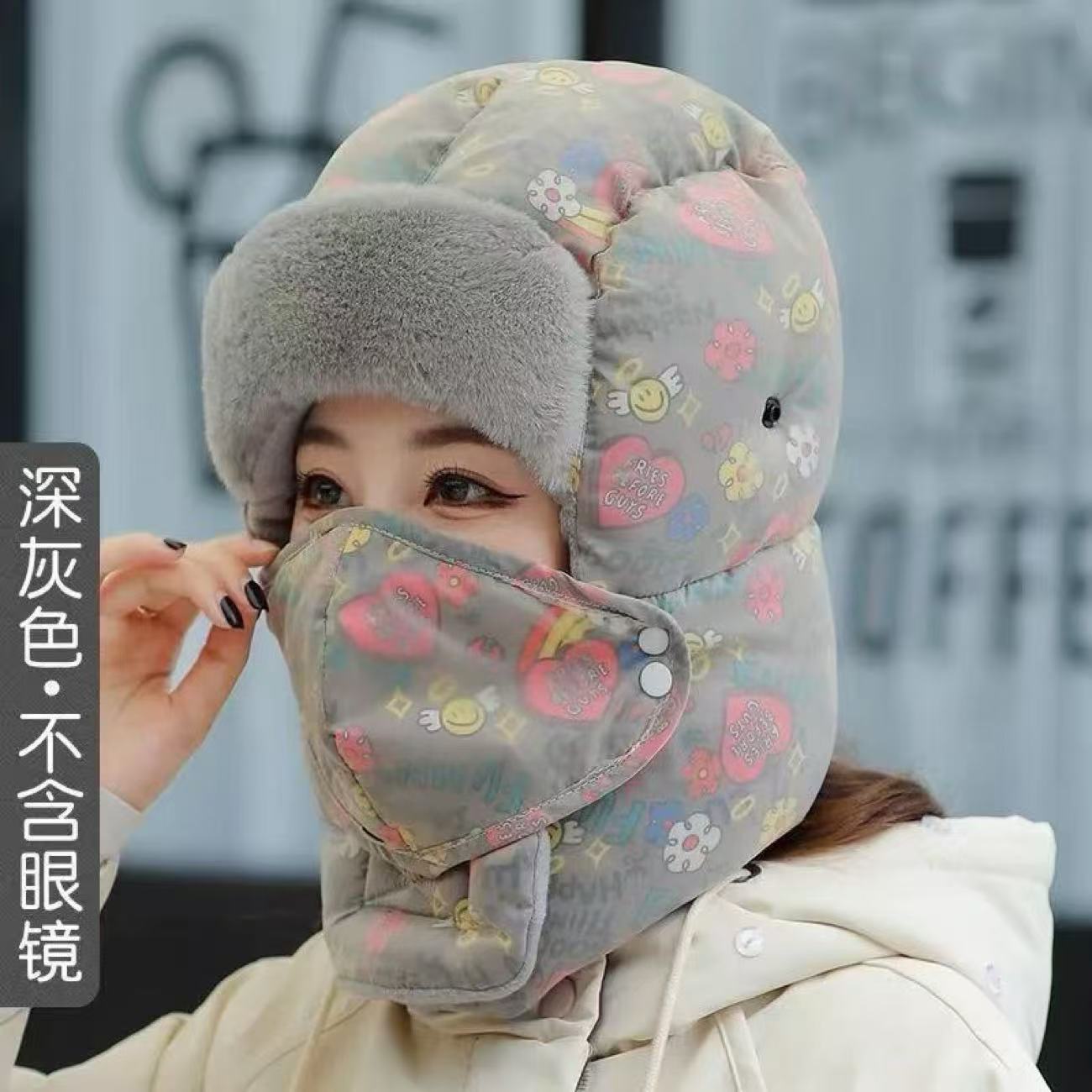 겨울용 자전거 타기 그래피티 레이펑 모자 여성용 보온 방한 방풍 후드 모자 귀 보호 목 보호 고글 포함스토어 가기