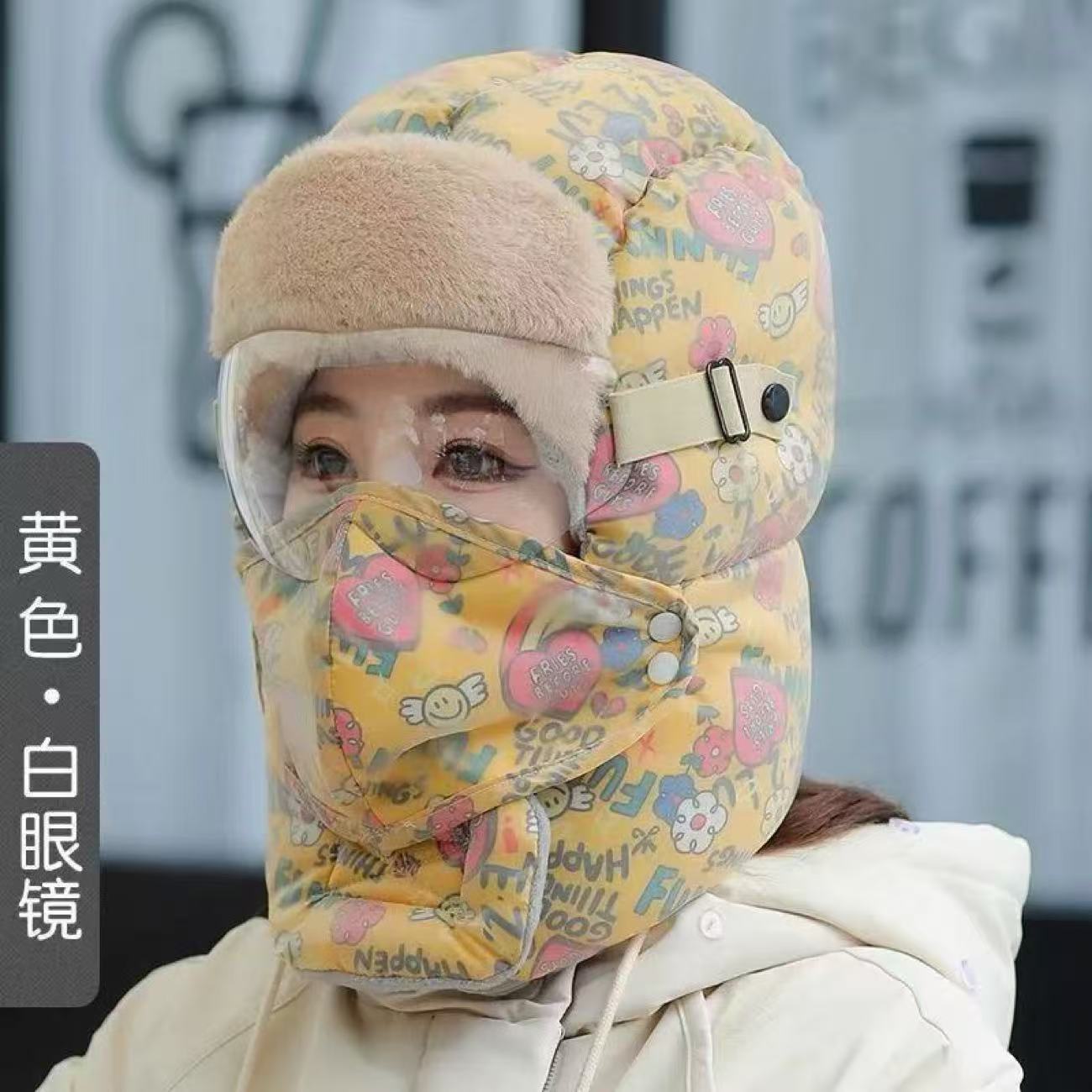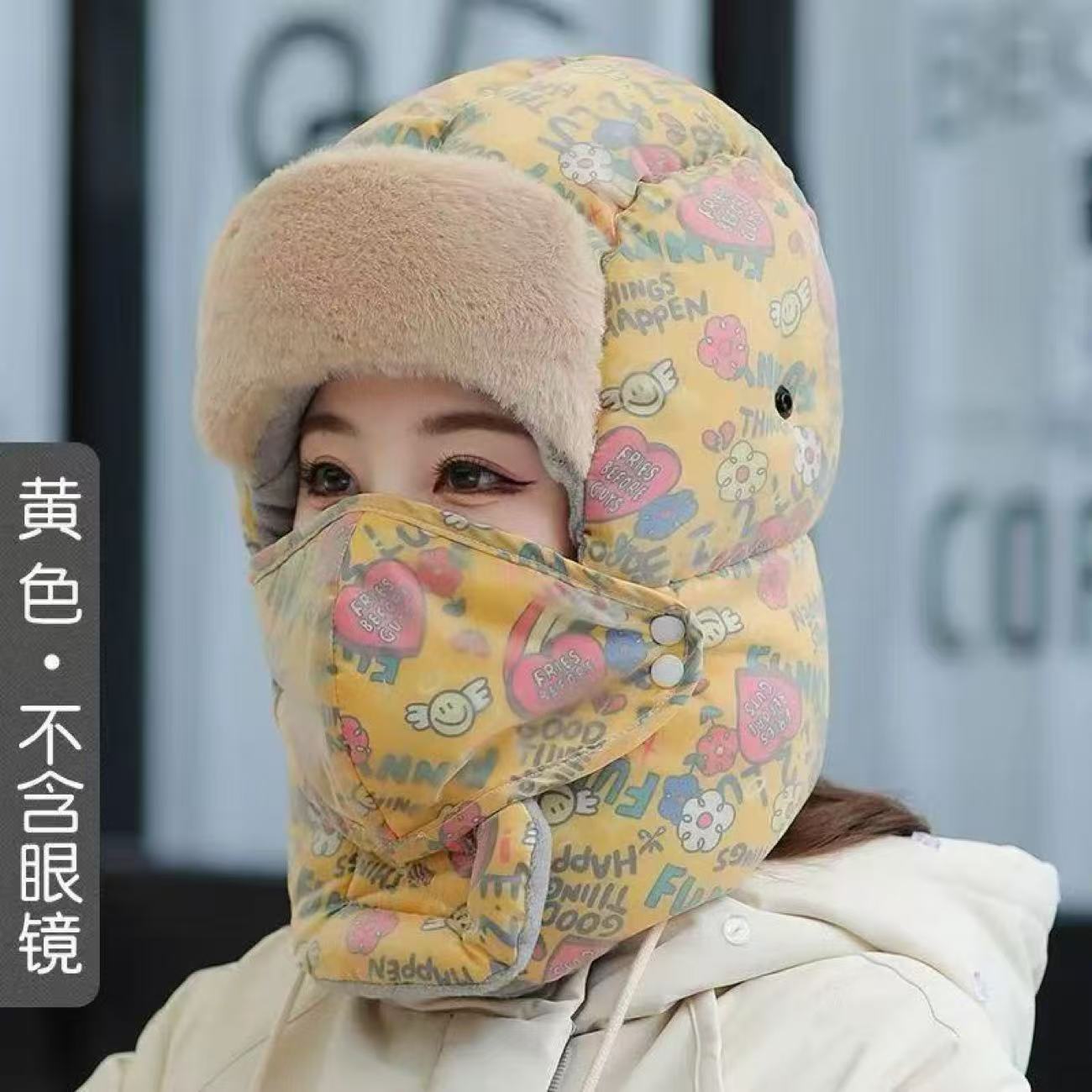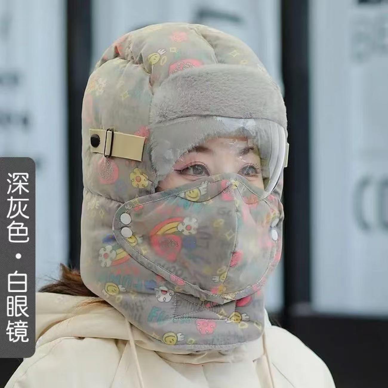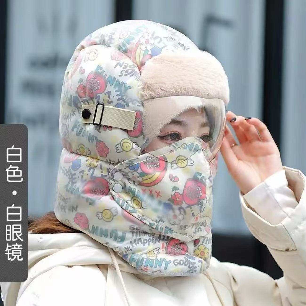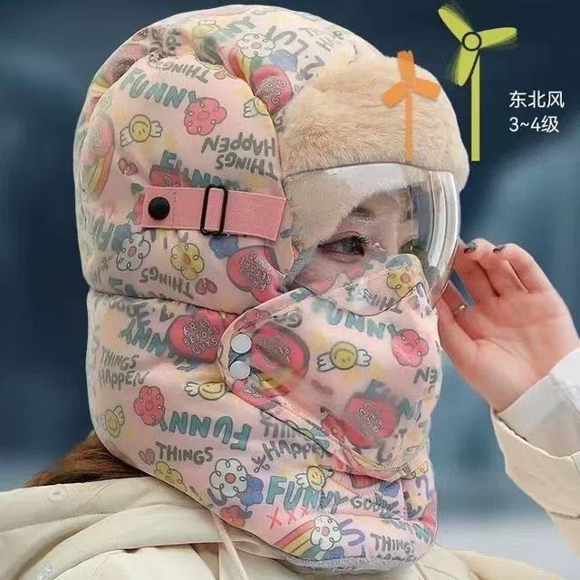 겨울용 자전거 타기 그래피티 레이펑 모자 여성용 보온 방한 방풍 후드 모자 귀 보호 목 보호 고글 포함