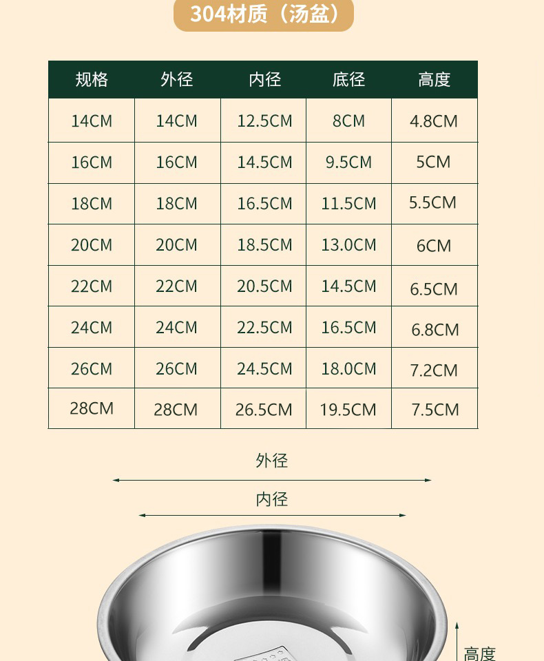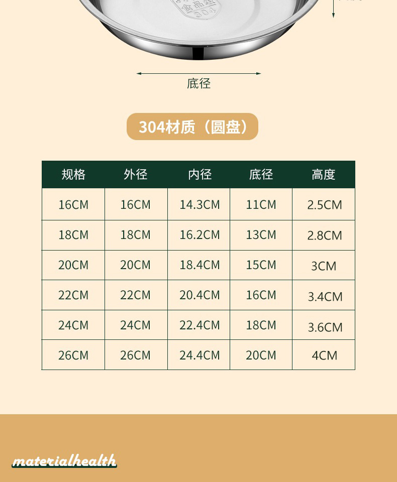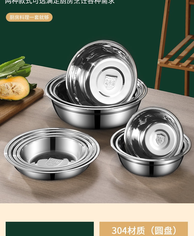 304 스테인레스 스틸 디스크 두껍고 심화 된 가정용 접시 수프 그릇 다목적 접시 디너 플레이트 식기 수프 분지 트레이스토어 가기
