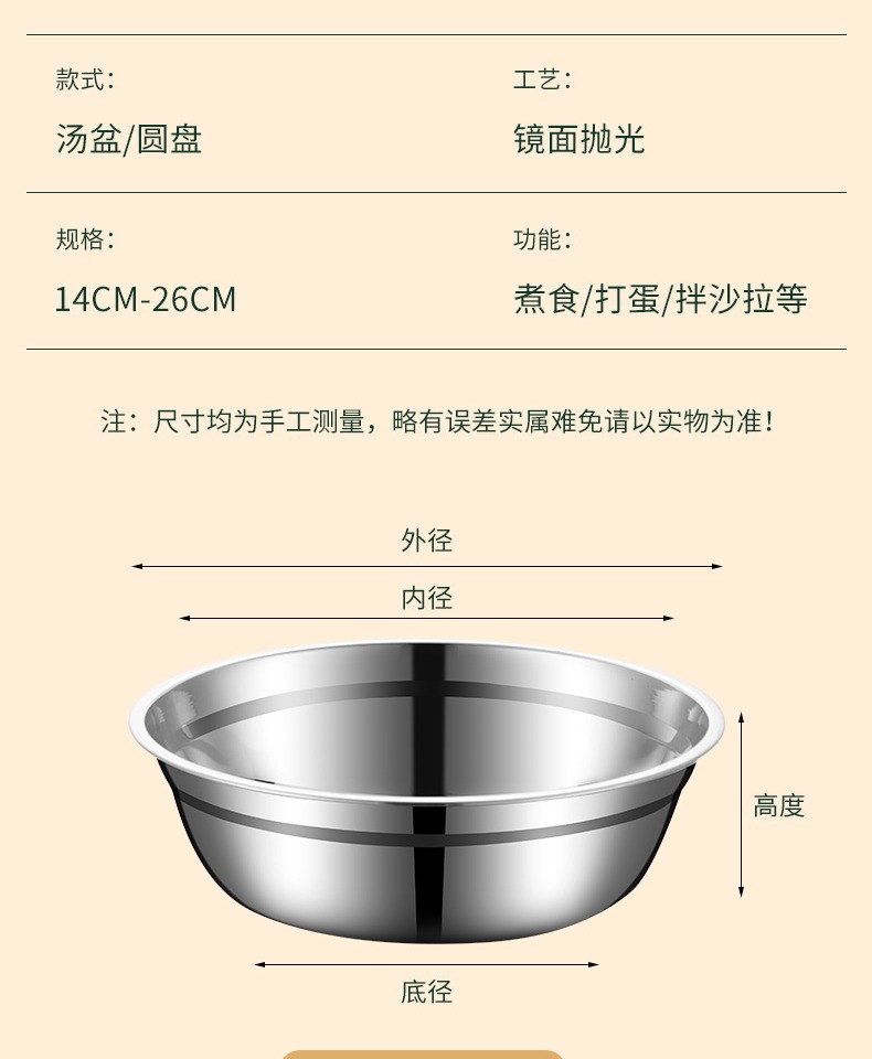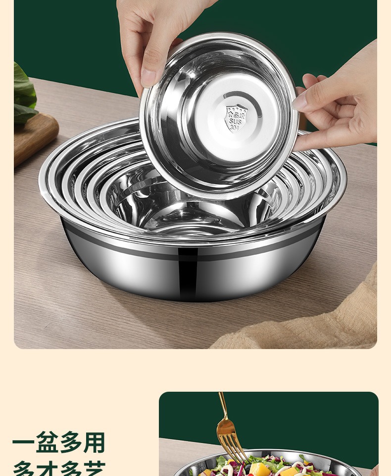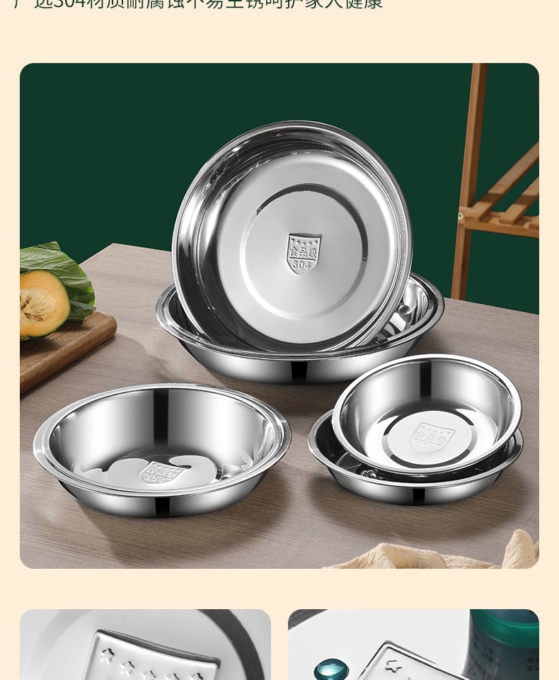304 스테인레스 스틸 디스크 두껍고 심화 된 가정용 접시 수프 그릇 다목적 접시 디너 플레이트 식기 수프 분지 트레이