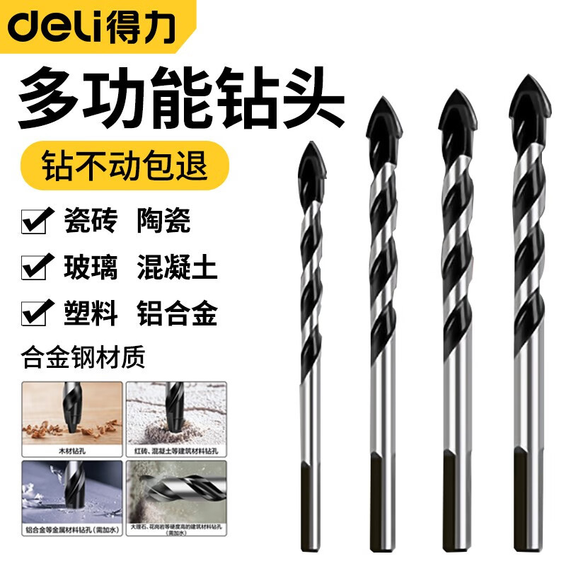 델리 전기 드릴 비트 타일 드릴 유리 목재 금속 손 드릴 다기능 합금 3스토어 가기