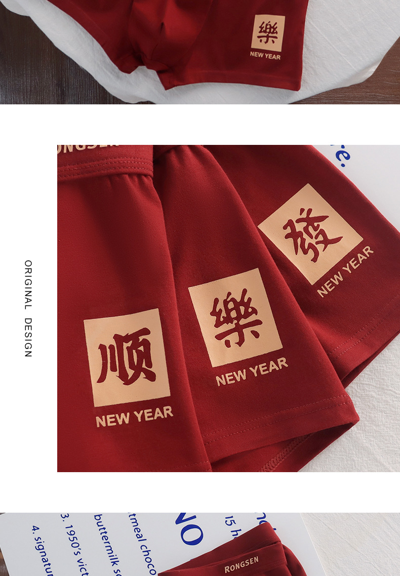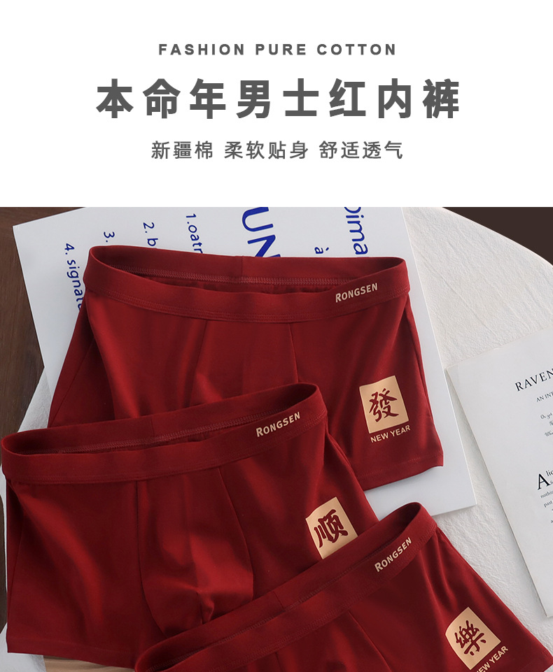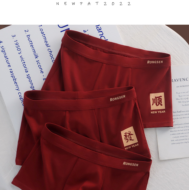 신년 행운을 기원하는 남성용 순면 팬티, 젊은 남성을 위한 트렌디한 사각팬티, 결혼식용 사각팬티