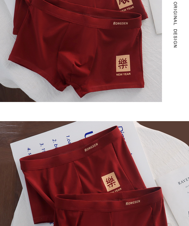 신년 행운을 기원하는 남성용 순면 팬티, 젊은 남성을 위한 트렌디한 사각팬티, 결혼식용 사각팬티스토어 가기