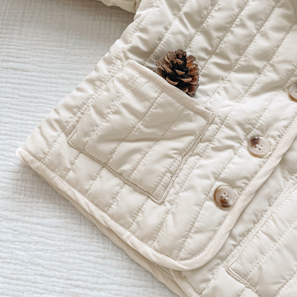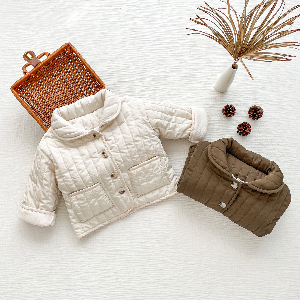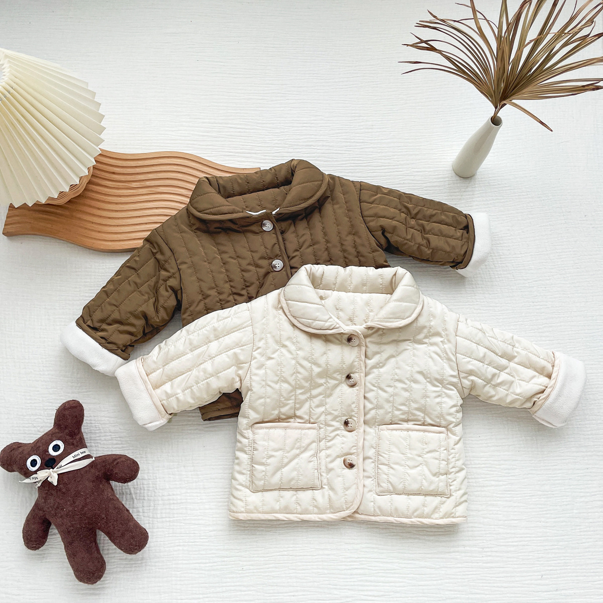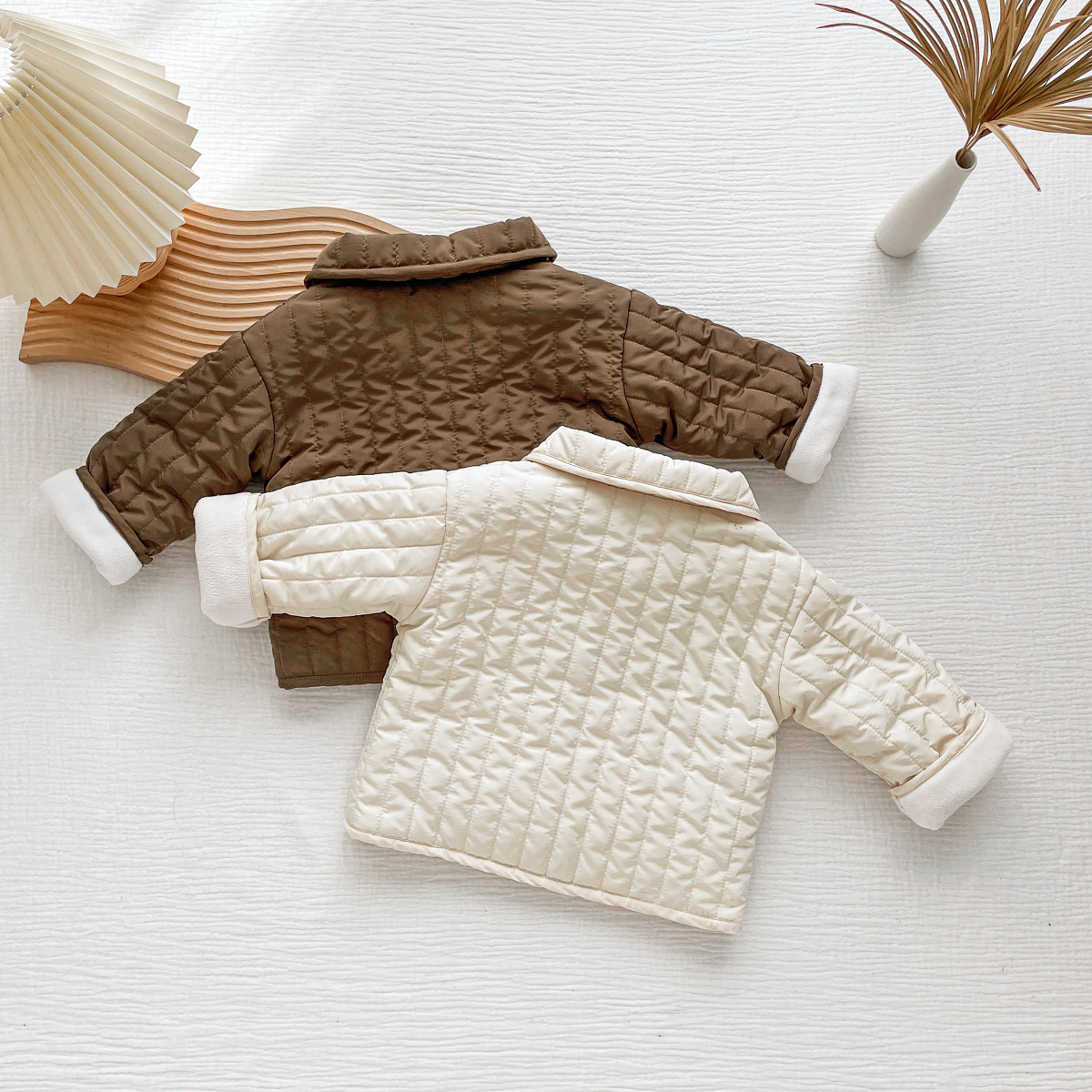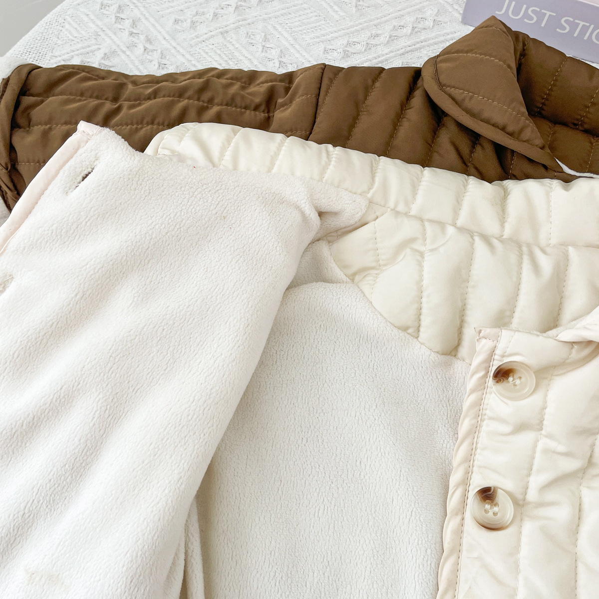 한국식 남성과 여성의 가을과 겨울 기모 퀼트면 패딩 코트 어린이 단색 싱글 브레스트 따뜻한 카디건스토어 가기