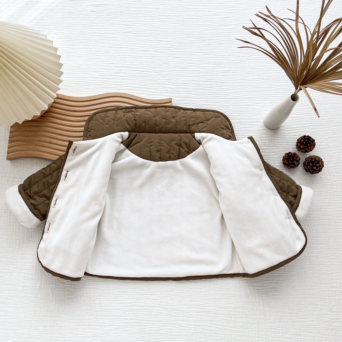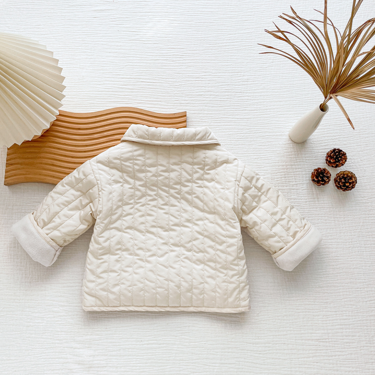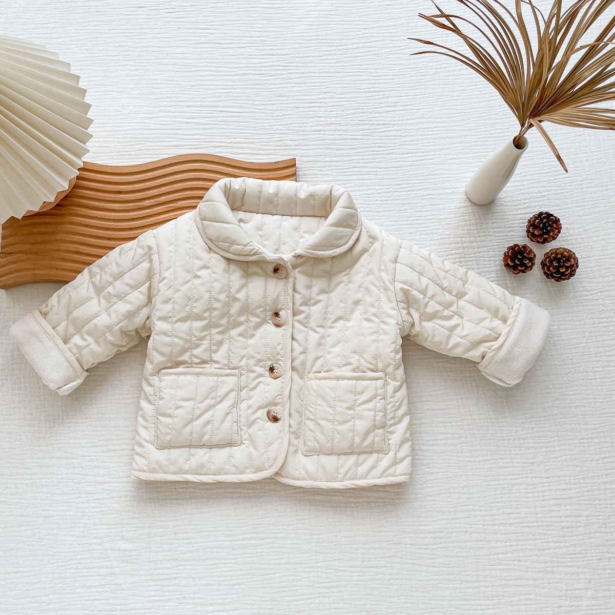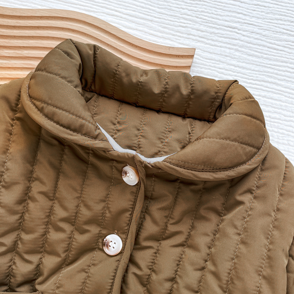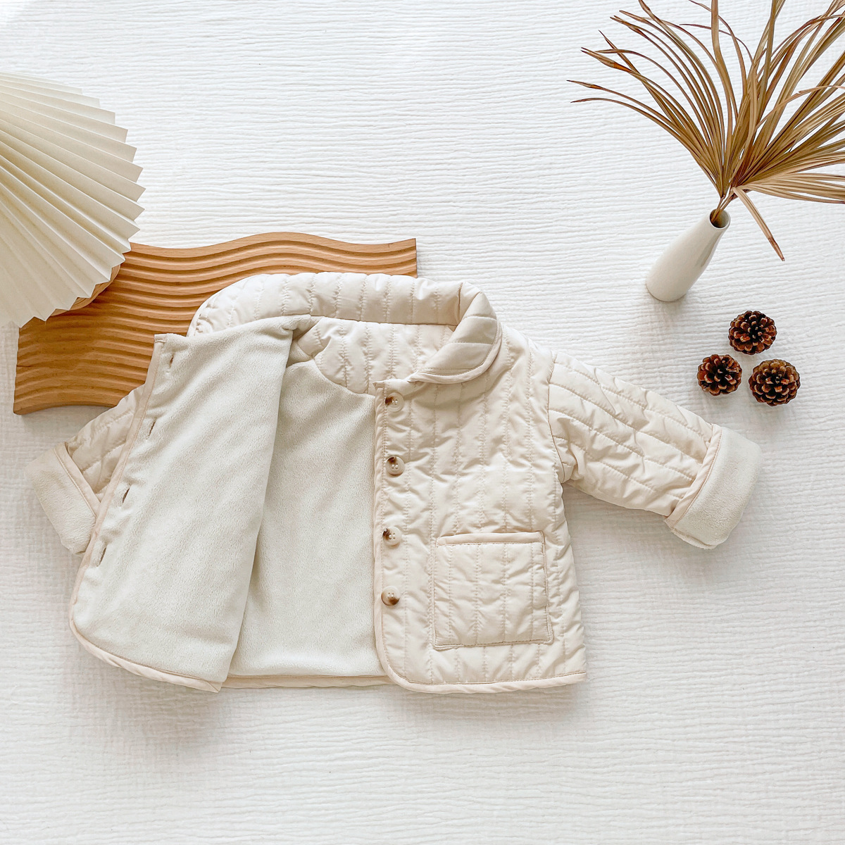 한국식 남성과 여성의 가을과 겨울 기모 퀼트면 패딩 코트 어린이 단색 싱글 브레스트 따뜻한 카디건스토어 가기