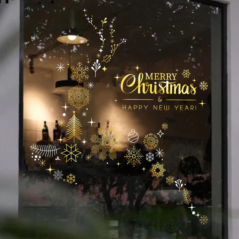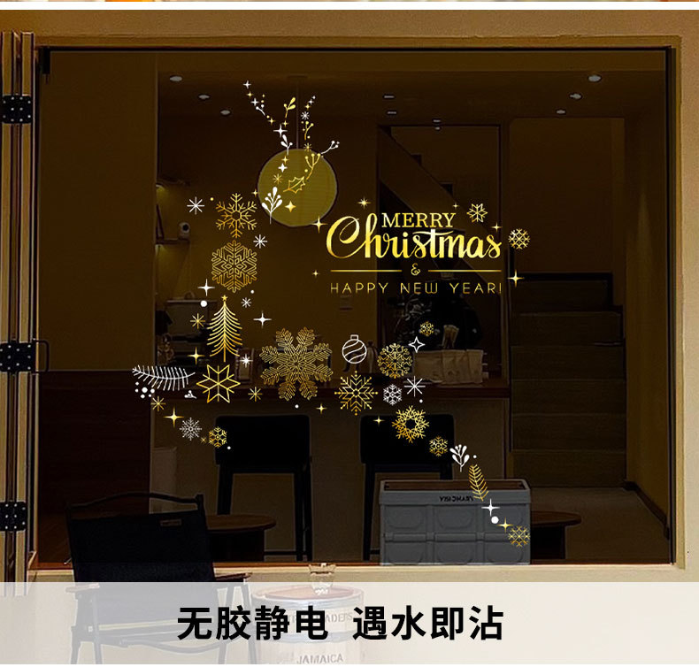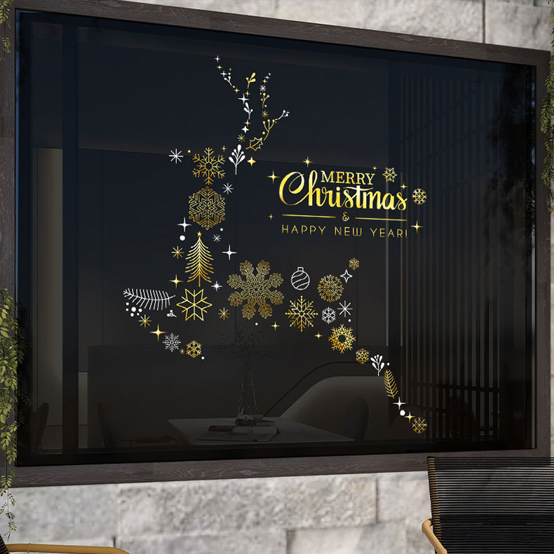 크리스마스 장식 2024 크리스마스 새 파티 도어 및 창 레이아웃 정적 스티커 골든 엘크 PVC 원활한 스티커스토어 가기