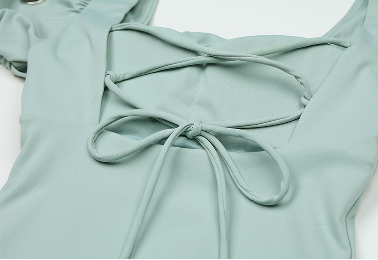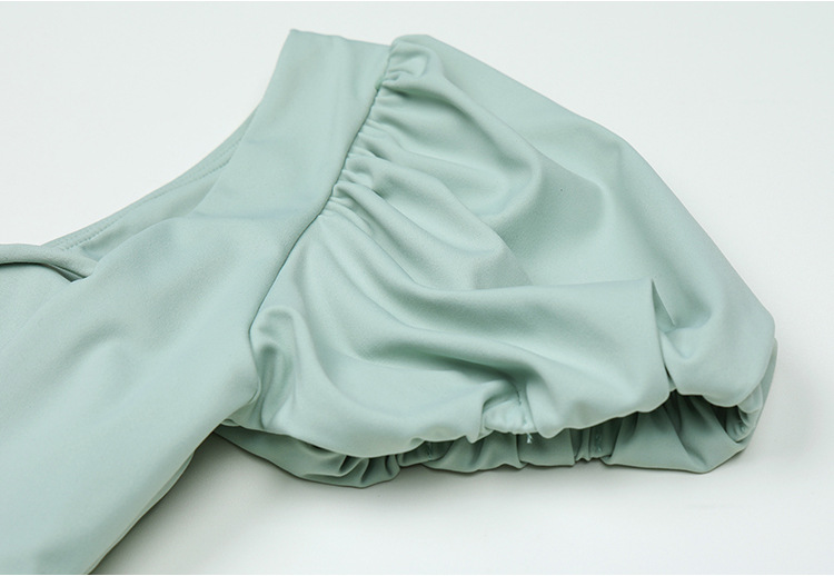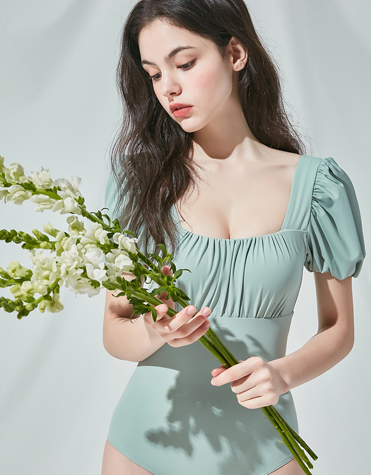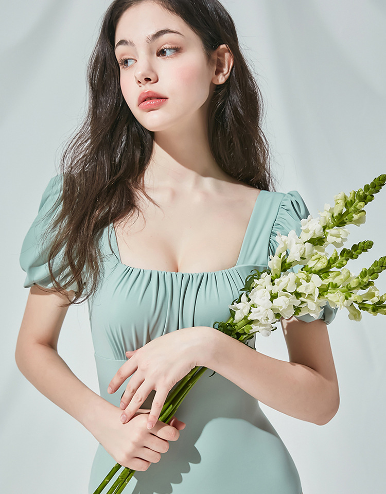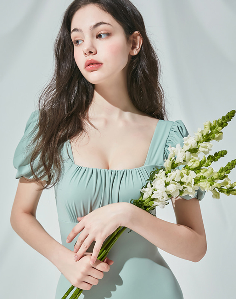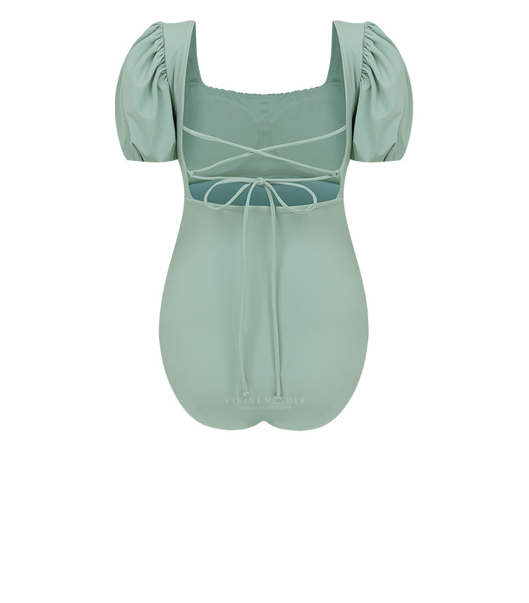 스퀘어 칼라 버블 슬리브 푸시 업 슬리밍 솔리드 컬러 소녀의 신선한 백리스 프린세스 스타일 트라이앵글 합류 수영 세트 보수스토어 가기