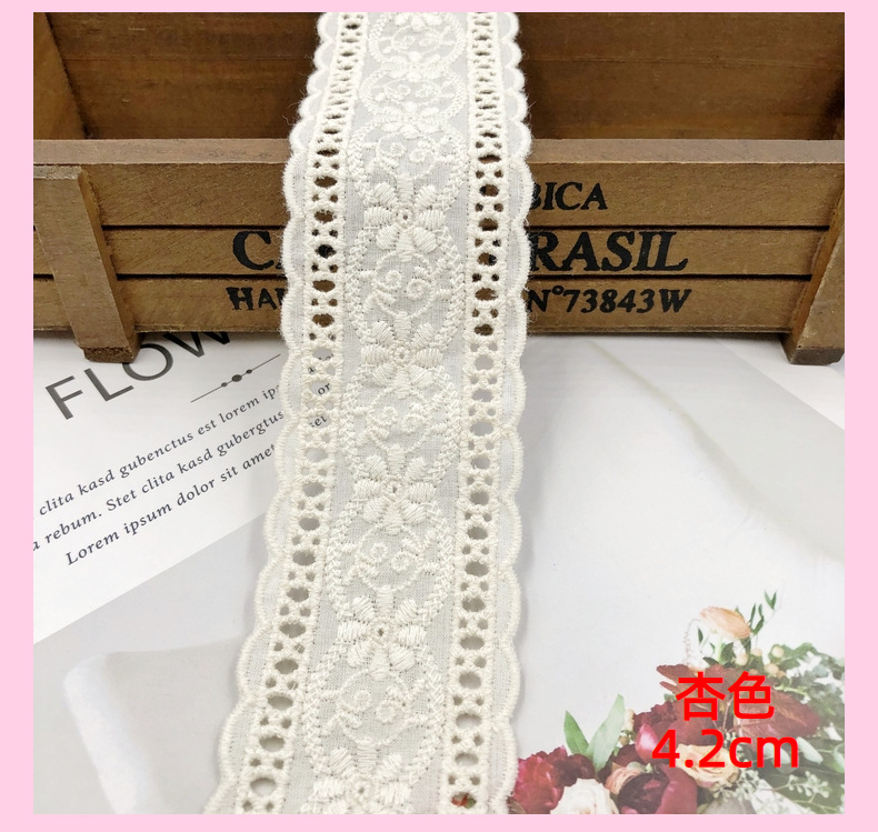 4.2cm 넓은 베이지 살구색 수제 DIY 의류 액세서리 면 자수 레이스 머리 장식 활 레이스 액세서리스토어 가기