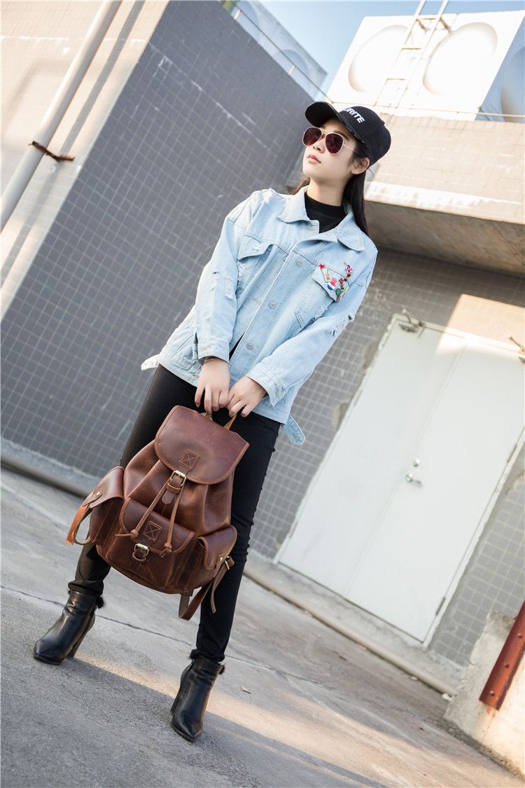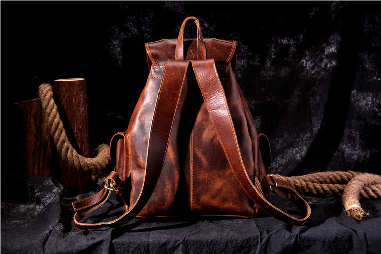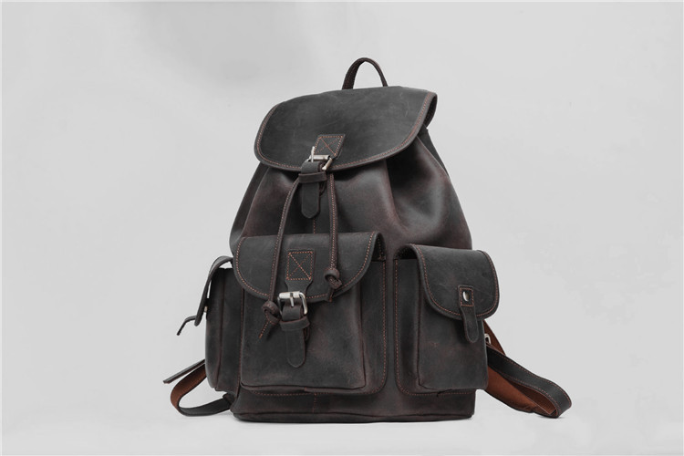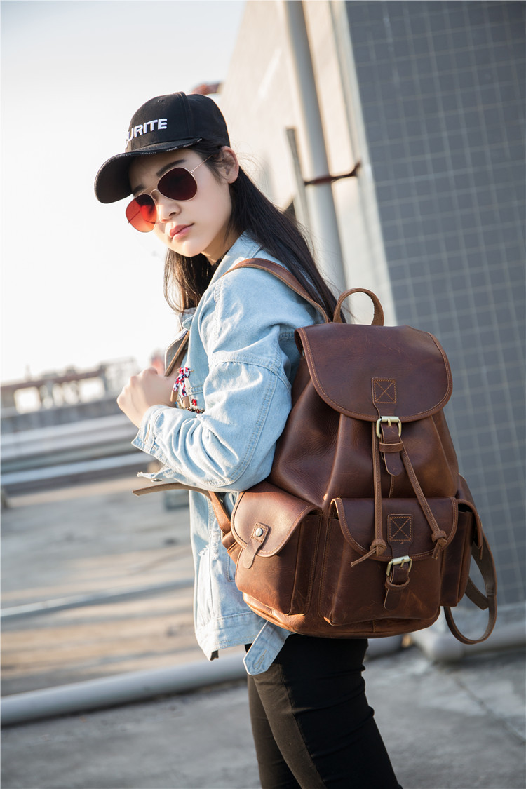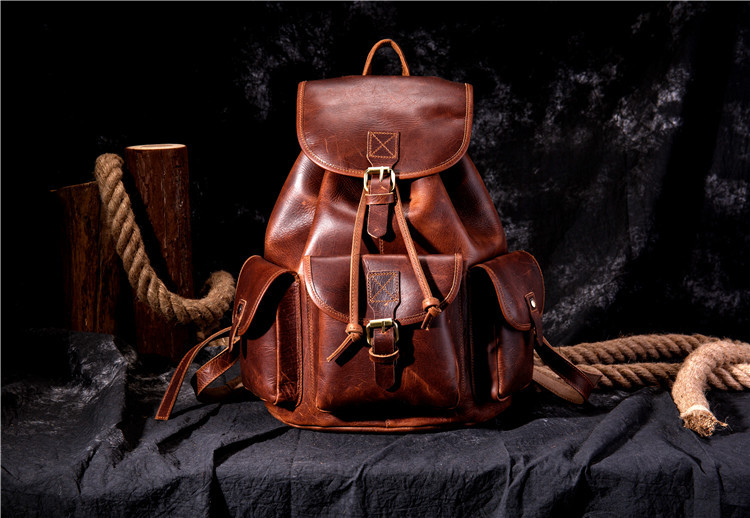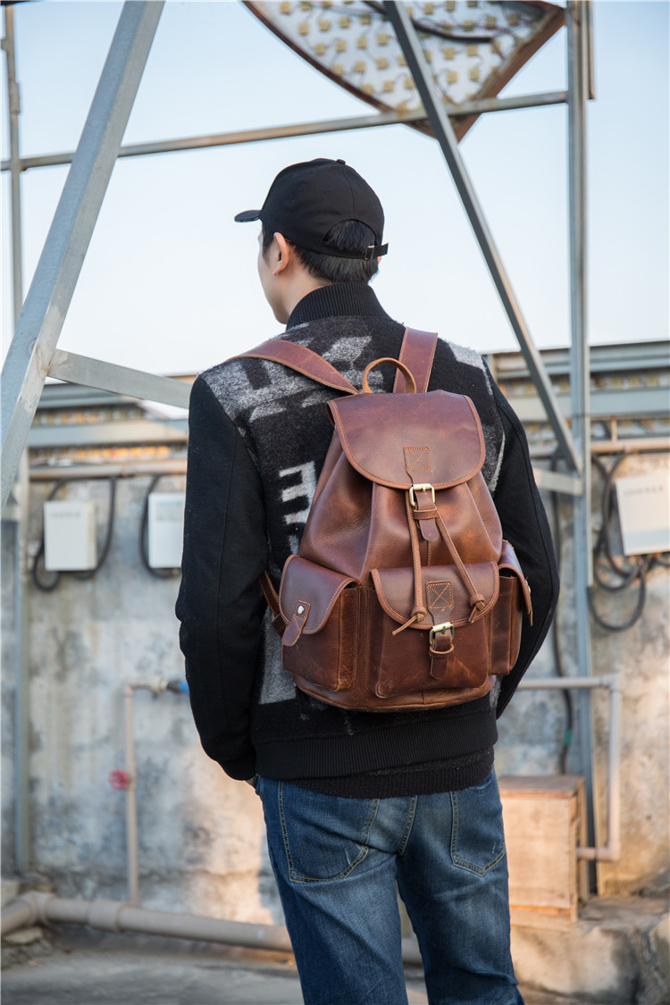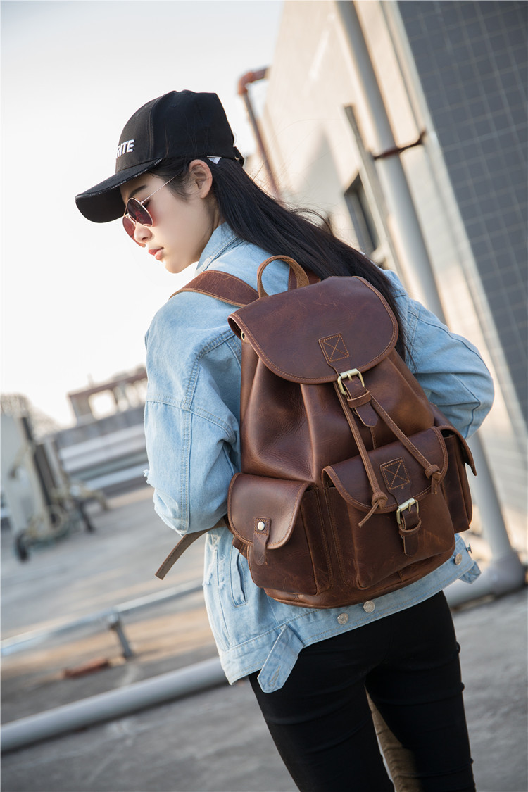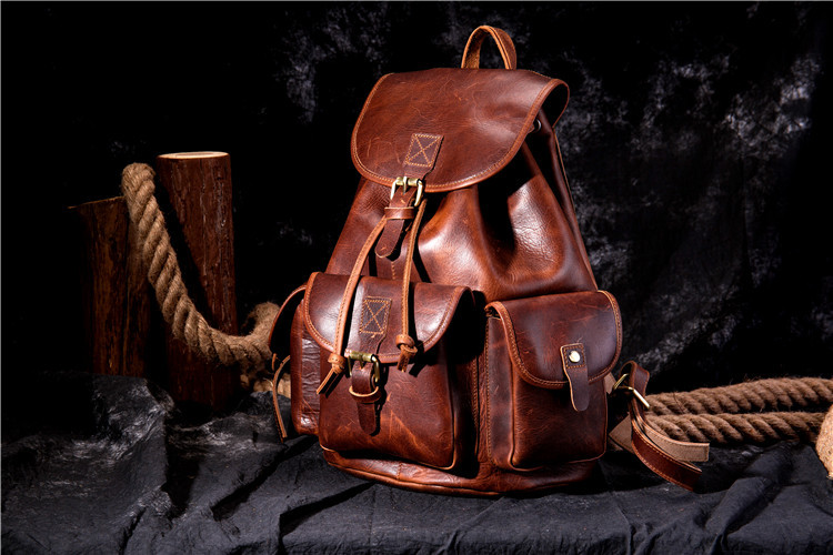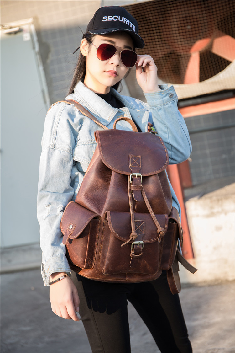 미친 말 가죽 야외 가방 캐주얼 여행 배낭 대용량 여성 여행 배낭 남성 가죽 여행 가방스토어 가기