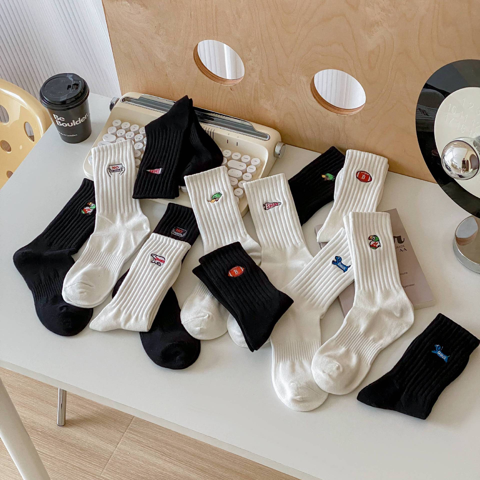 양말 남성용 중반 종아리 양말 유행 모든 어울리는 순면 땀 흡수성 탈취제 거리 스포츠 유행 양말 커플 올 매칭스토어 가기