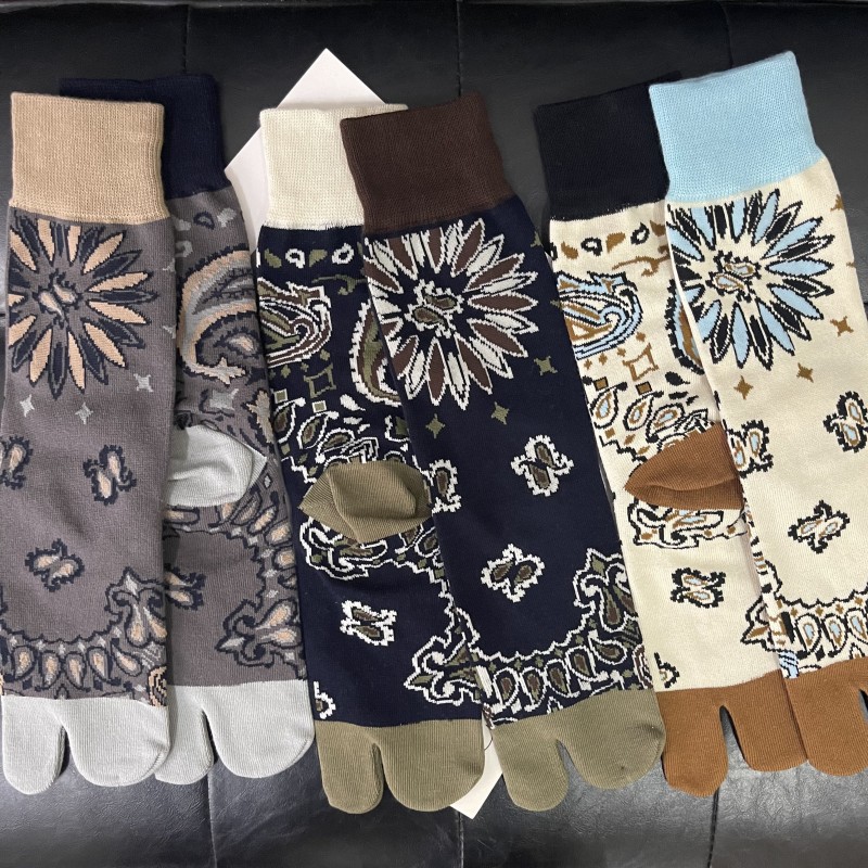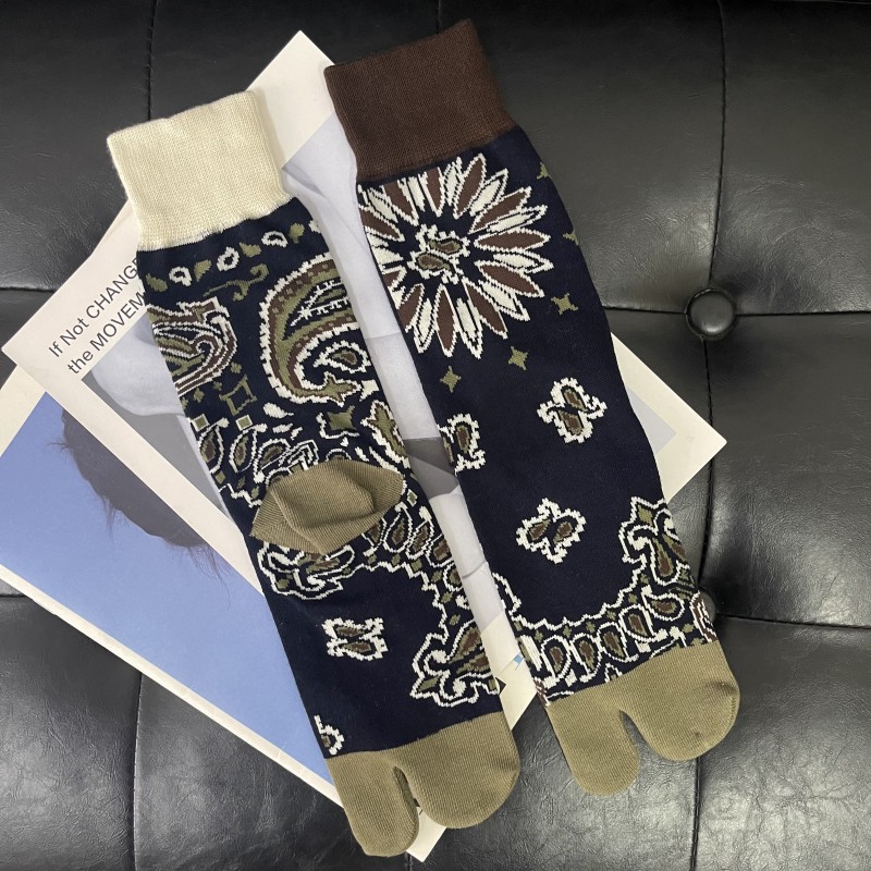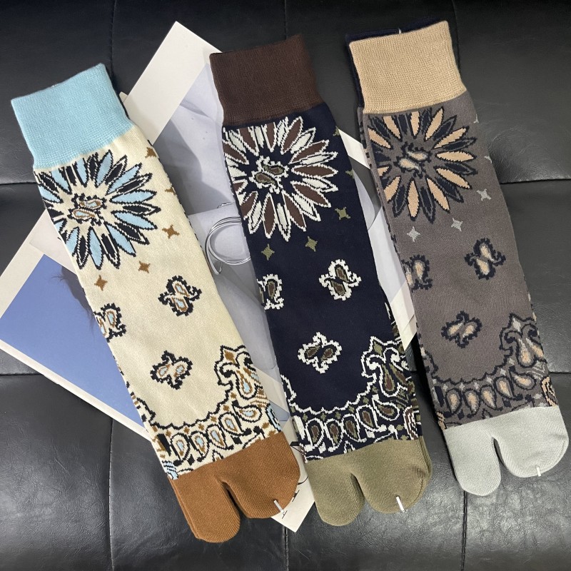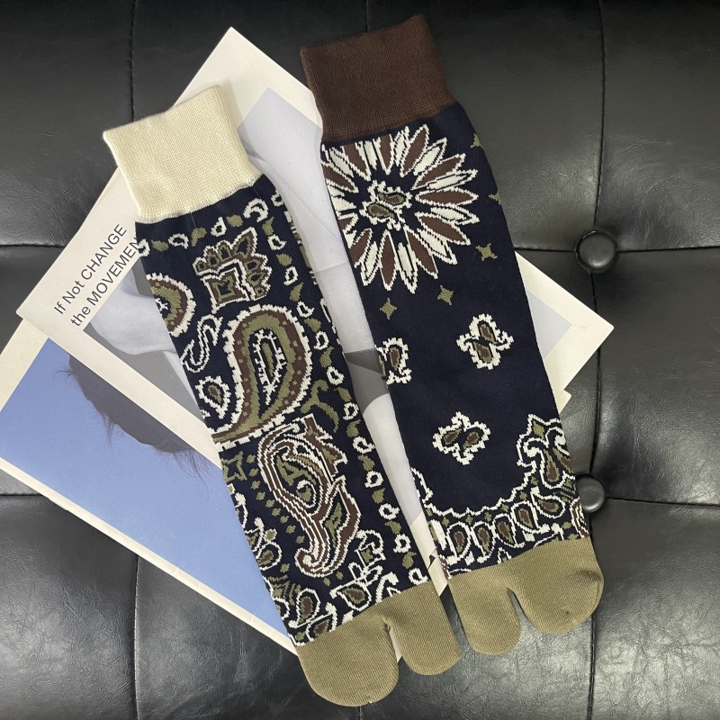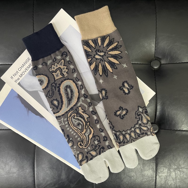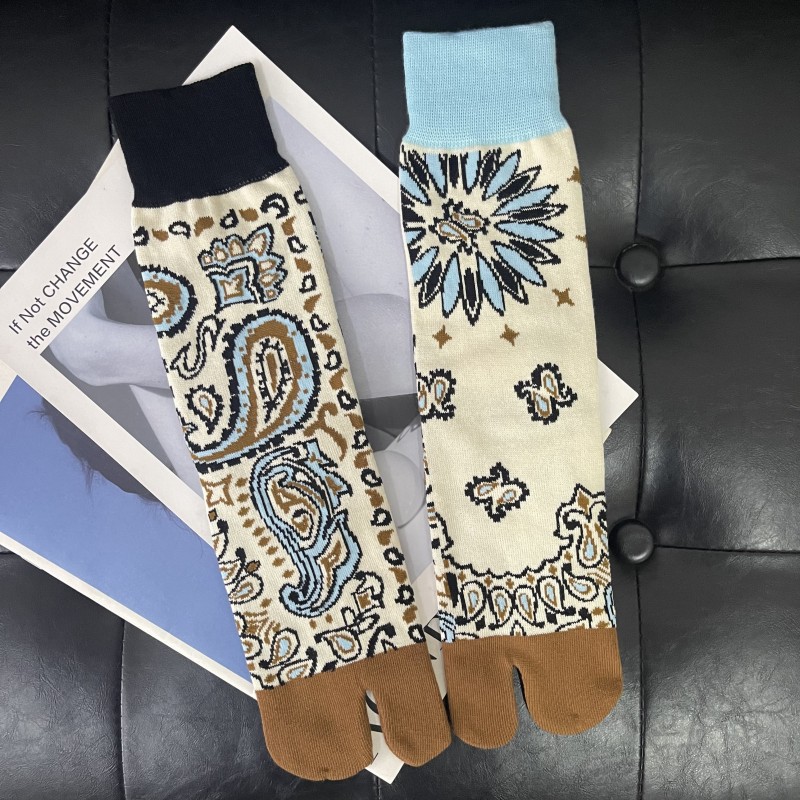 양각 된 꽃 성격 왼쪽 및 오른쪽 발 자카드 발가락 양말 두 손가락 중반 종아리 복고풍 패션 양말 등산 양말스토어 가기