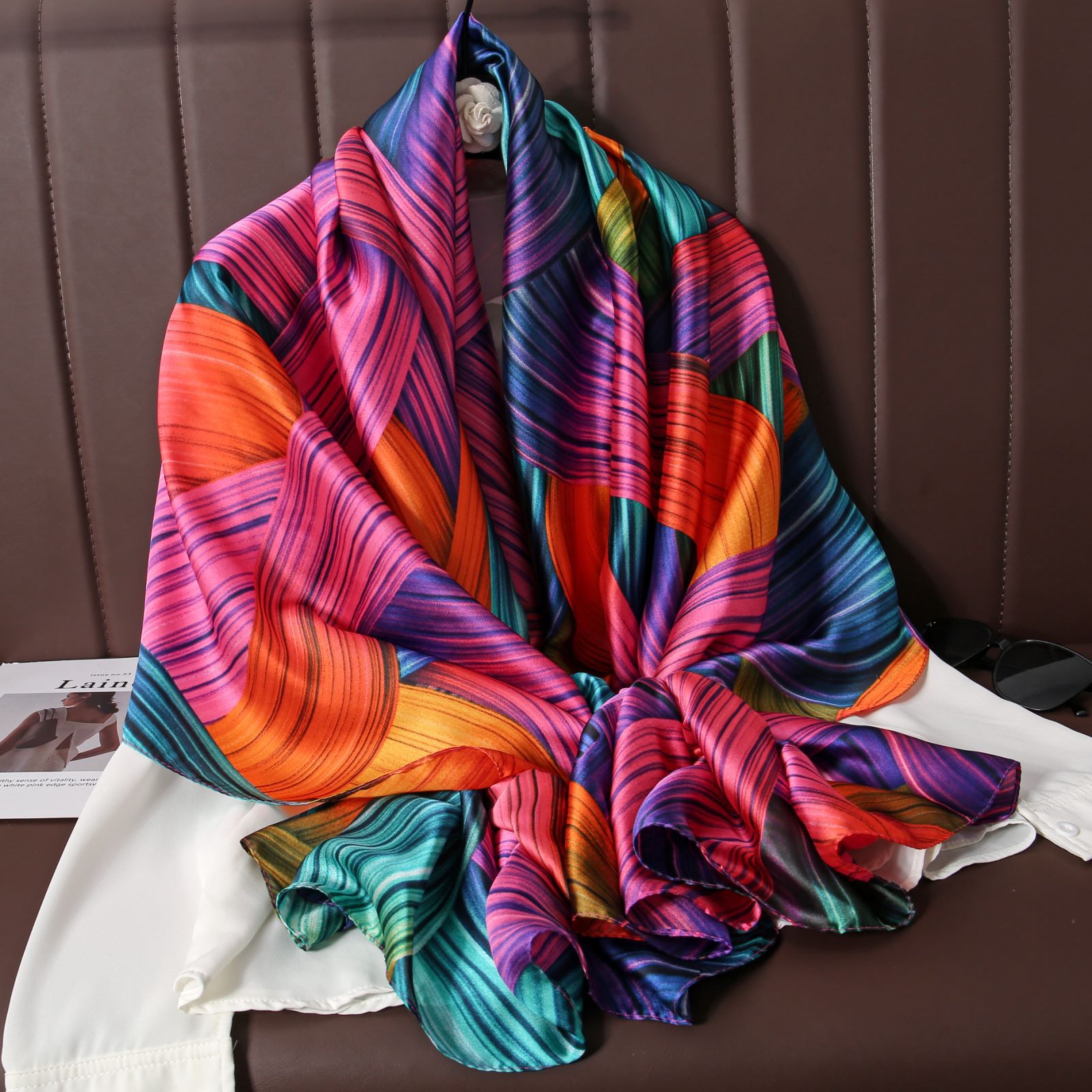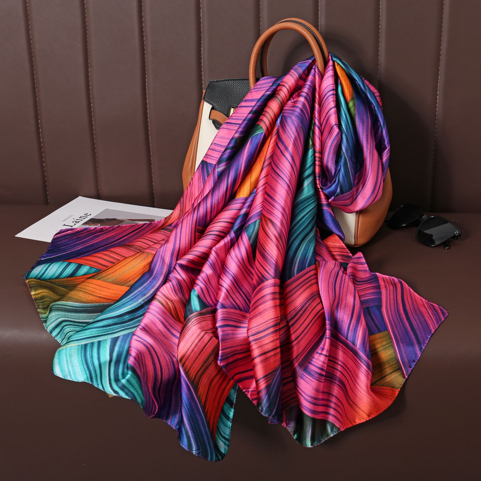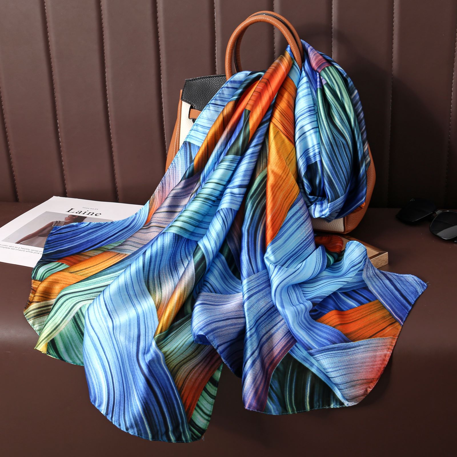 패션 아트 다채로운 추상 그림 브로케이드 새틴 긴 실크 스카프 우아한 기질 여성 외부 목도리 스카프스토어 가기