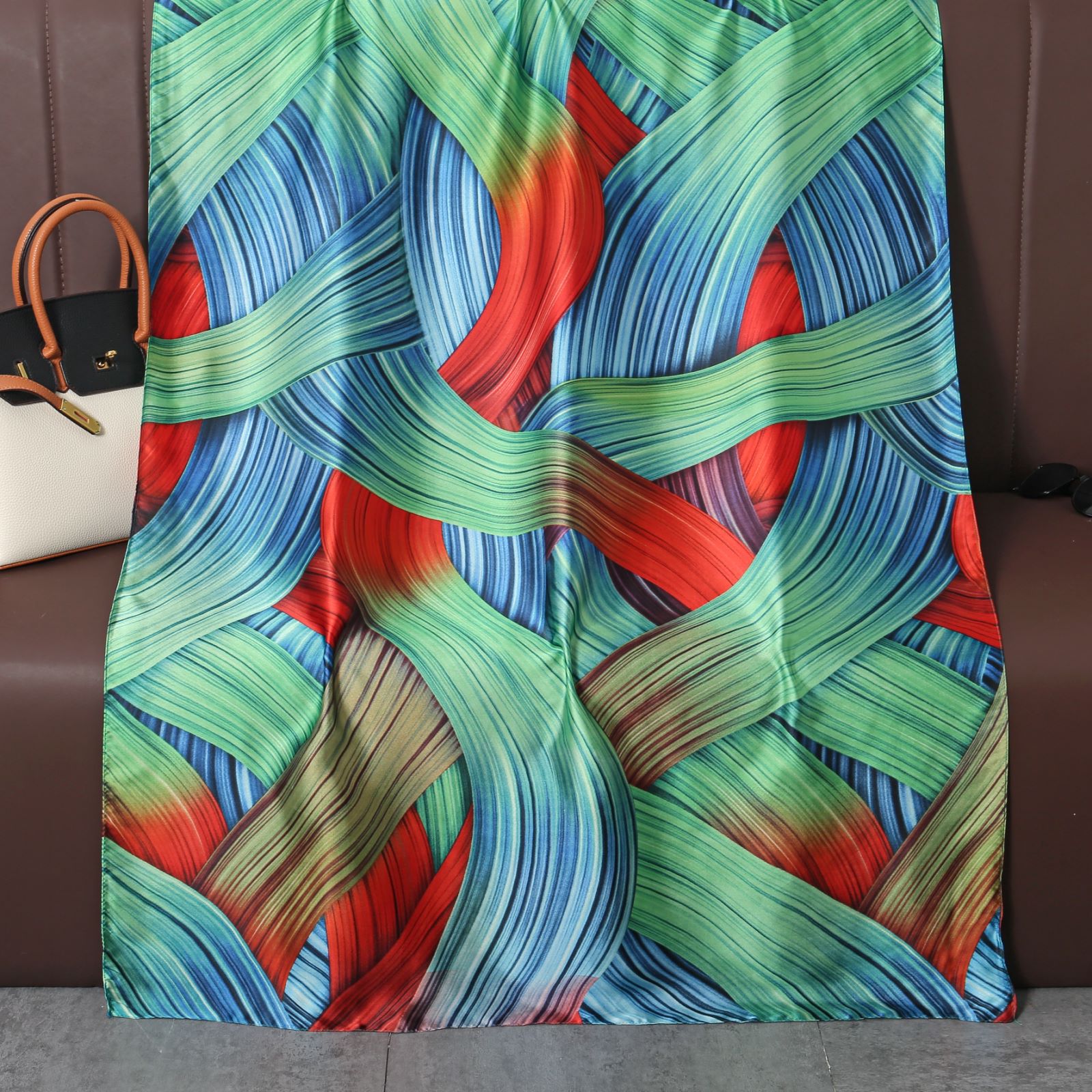 패션 아트 다채로운 추상 그림 브로케이드 새틴 긴 실크 스카프 우아한 기질 여성 외부 목도리 스카프