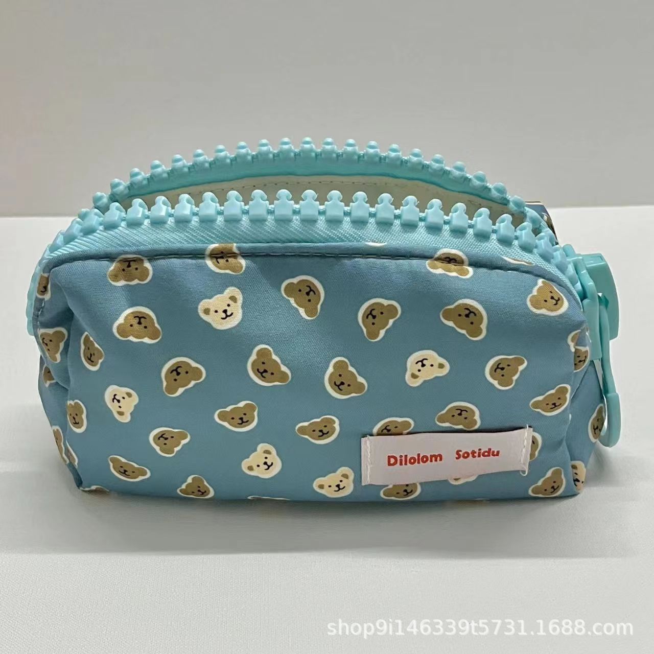 곰 인쇄 연필 케이스 큰 두꺼운 치아 지퍼 연필 케이스 고등학교 학생 저장 가방 작은 휴대용 화장품 가방 작은스토어 가기