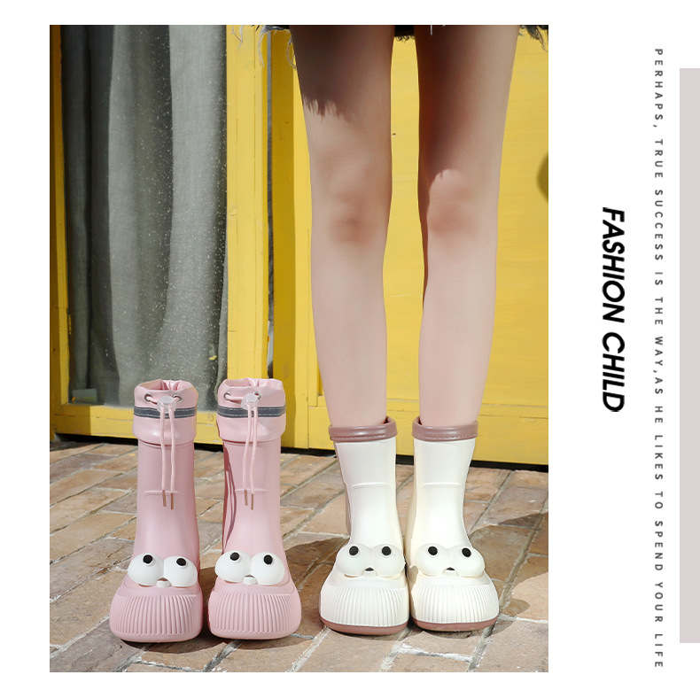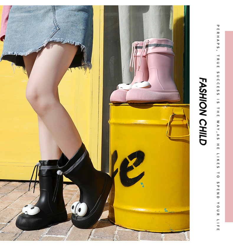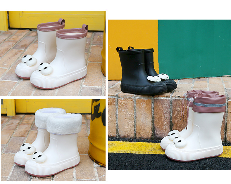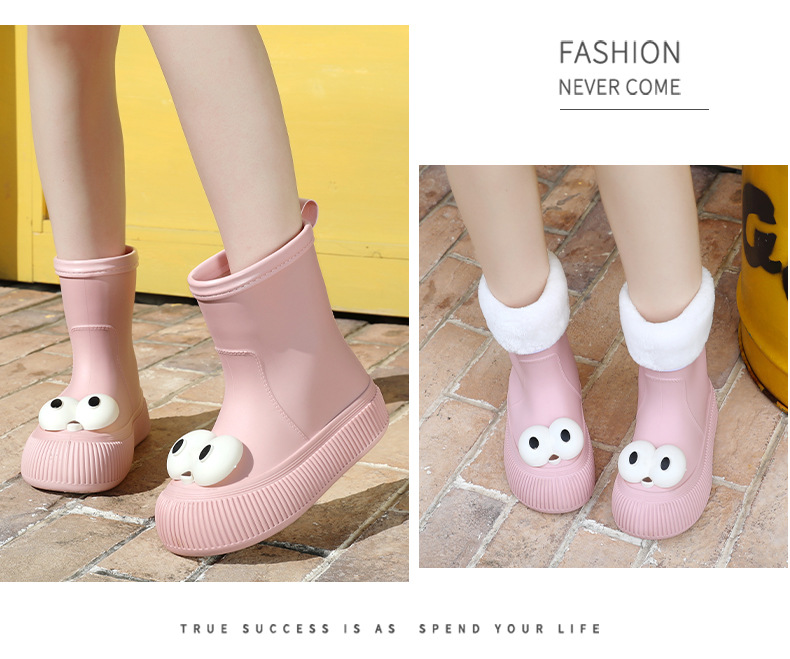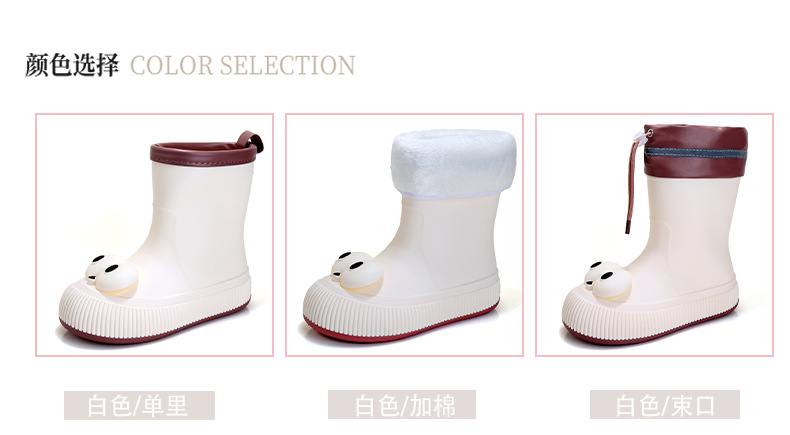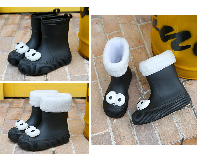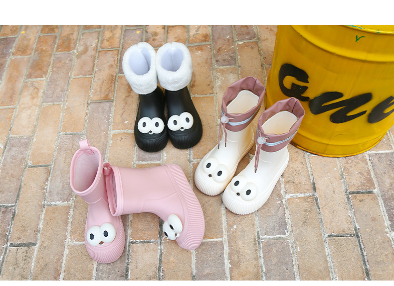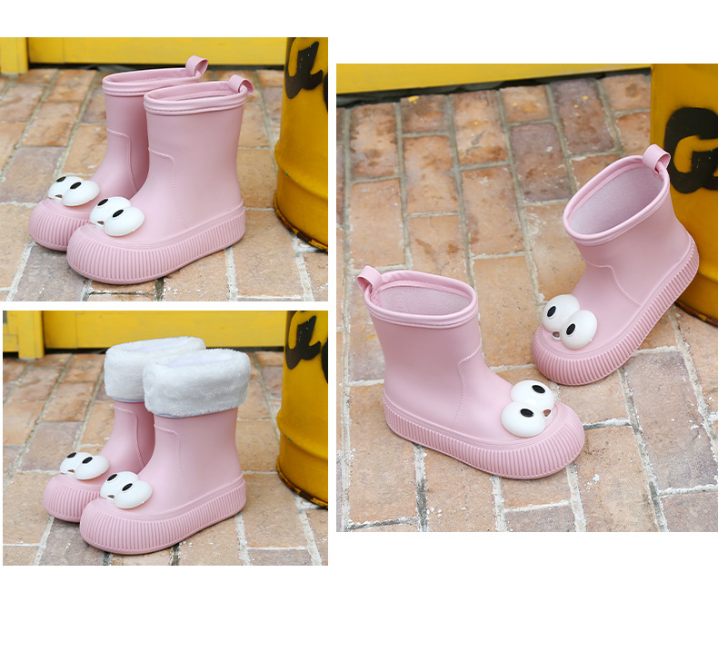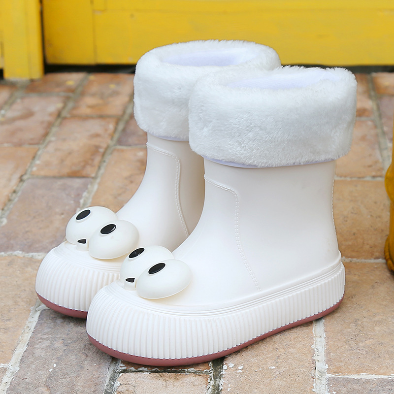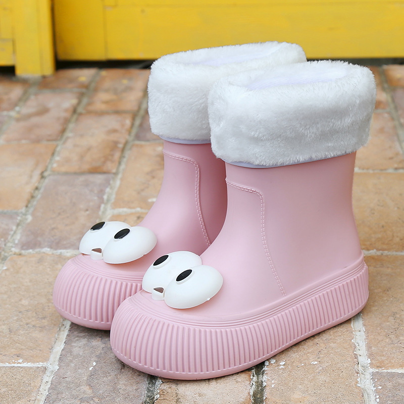 귀여운 큰 눈 비 신발 비 슬립 스노우 부츠 여성의 겨울 따뜻한 기모 중간 부츠 동북 면화 물 신발 코르셋 장화