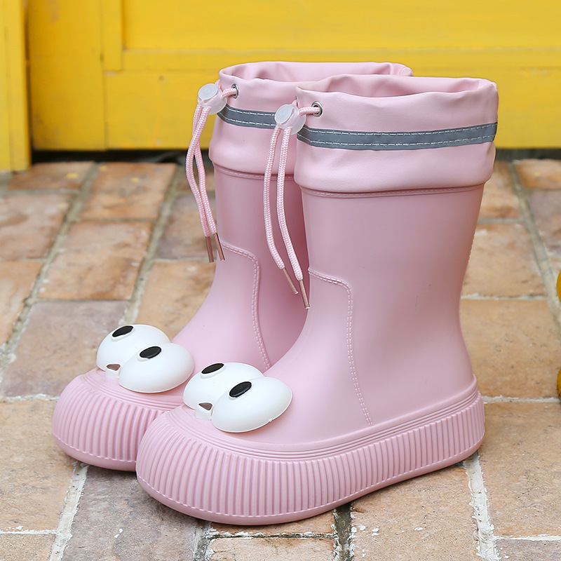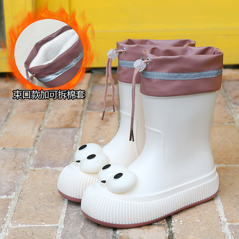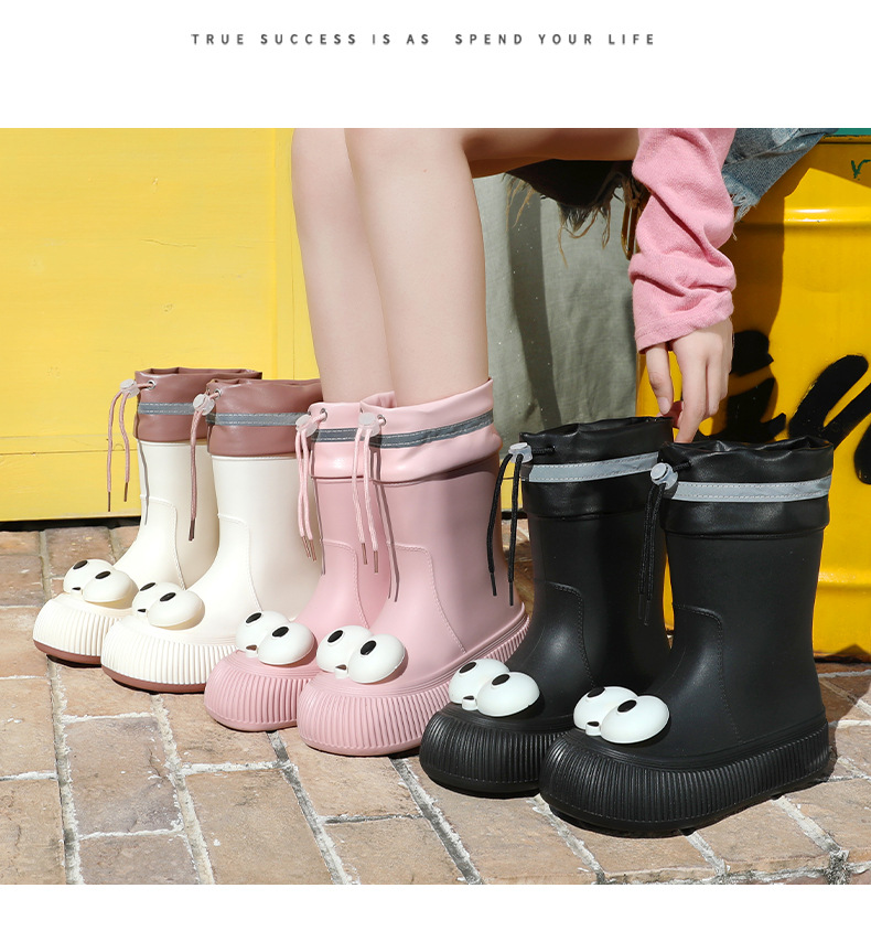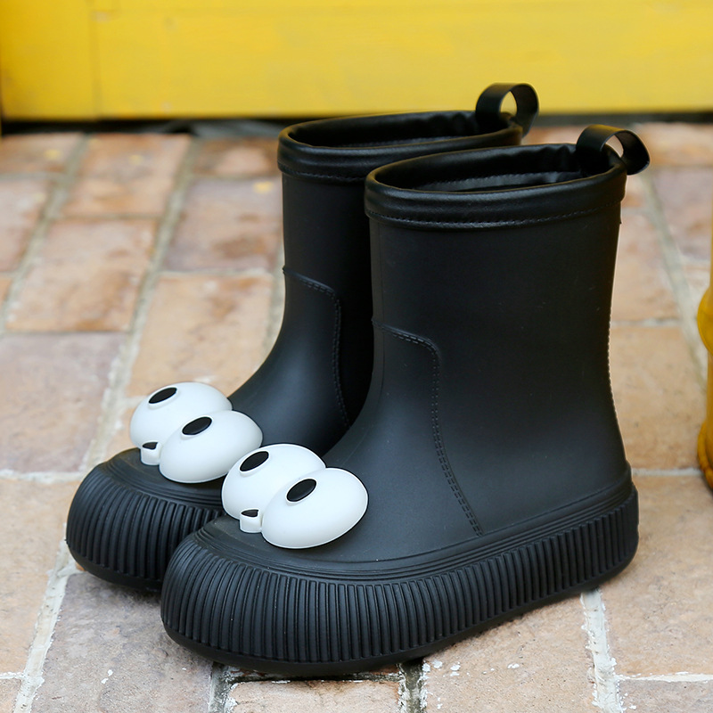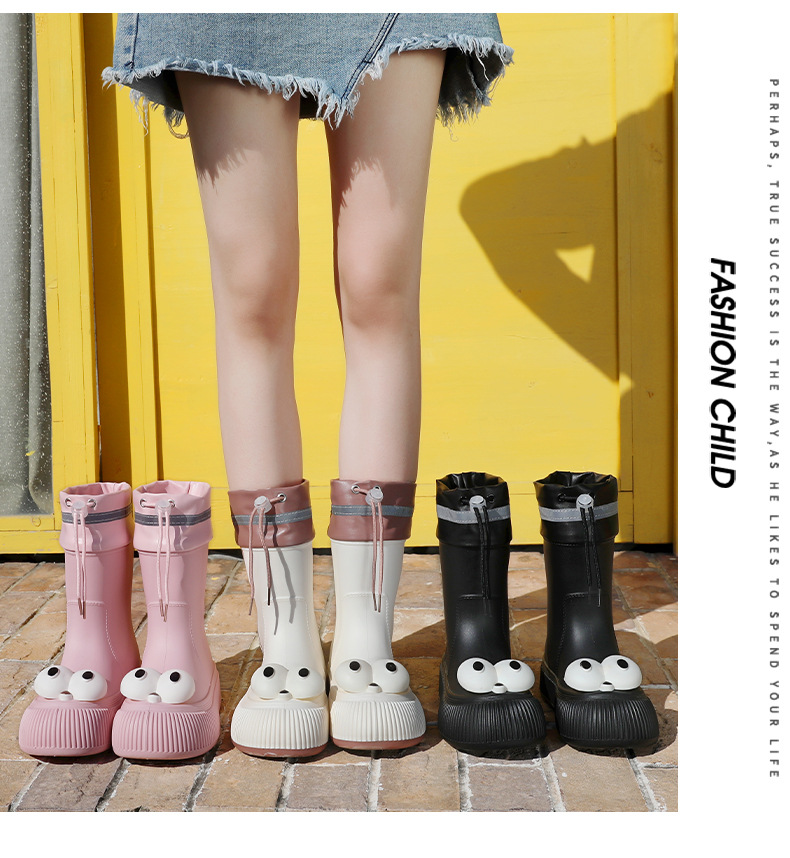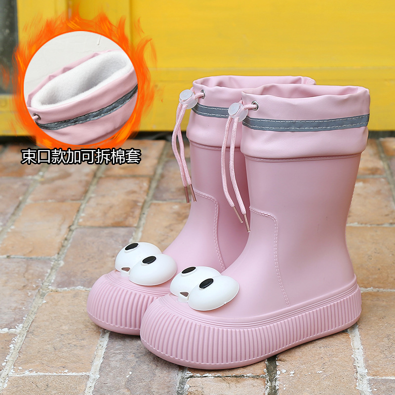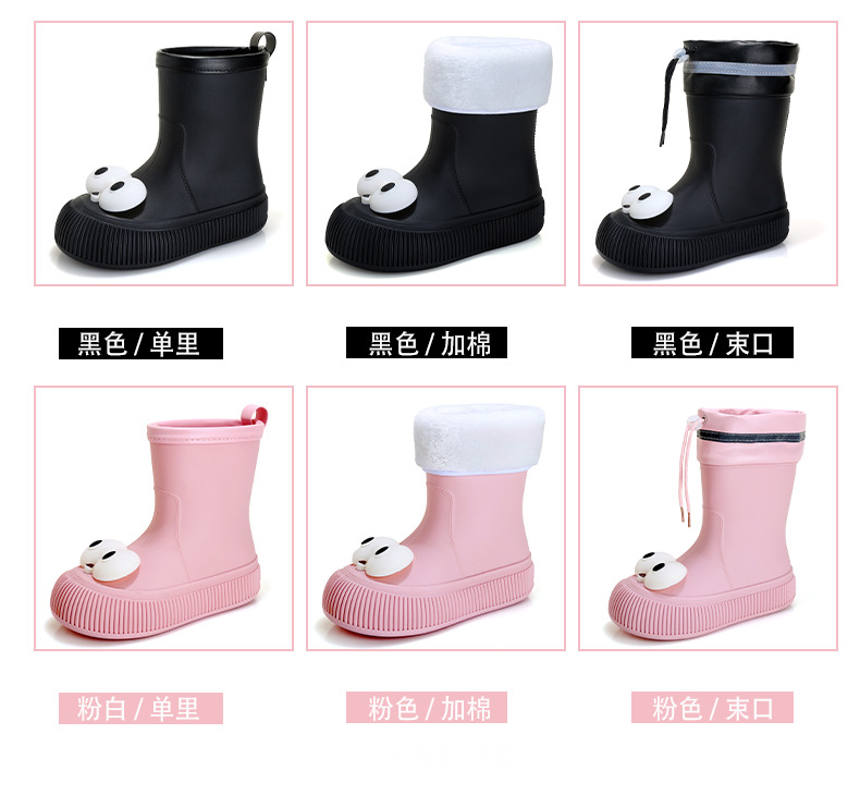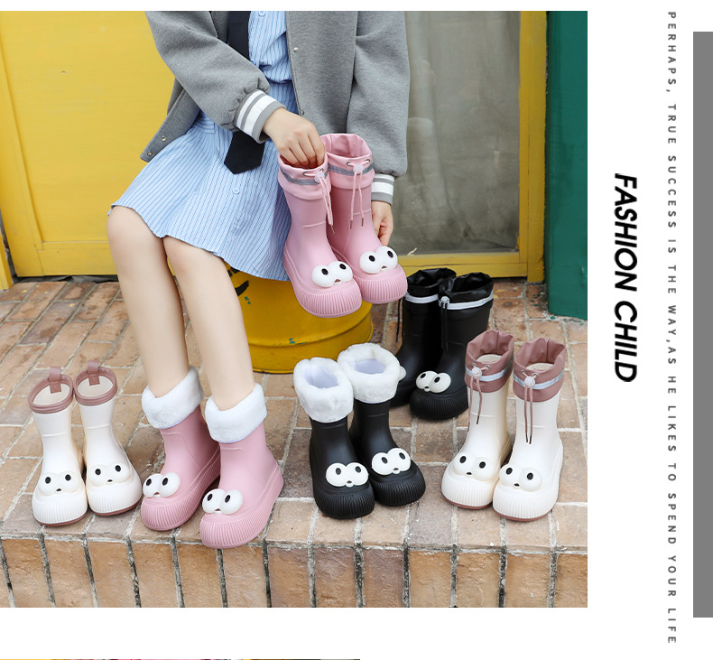 귀여운 큰 눈 비 신발 비 슬립 스노우 부츠 여성의 겨울 따뜻한 기모 중간 부츠 동북 면화 물 신발 코르셋 장화