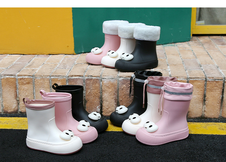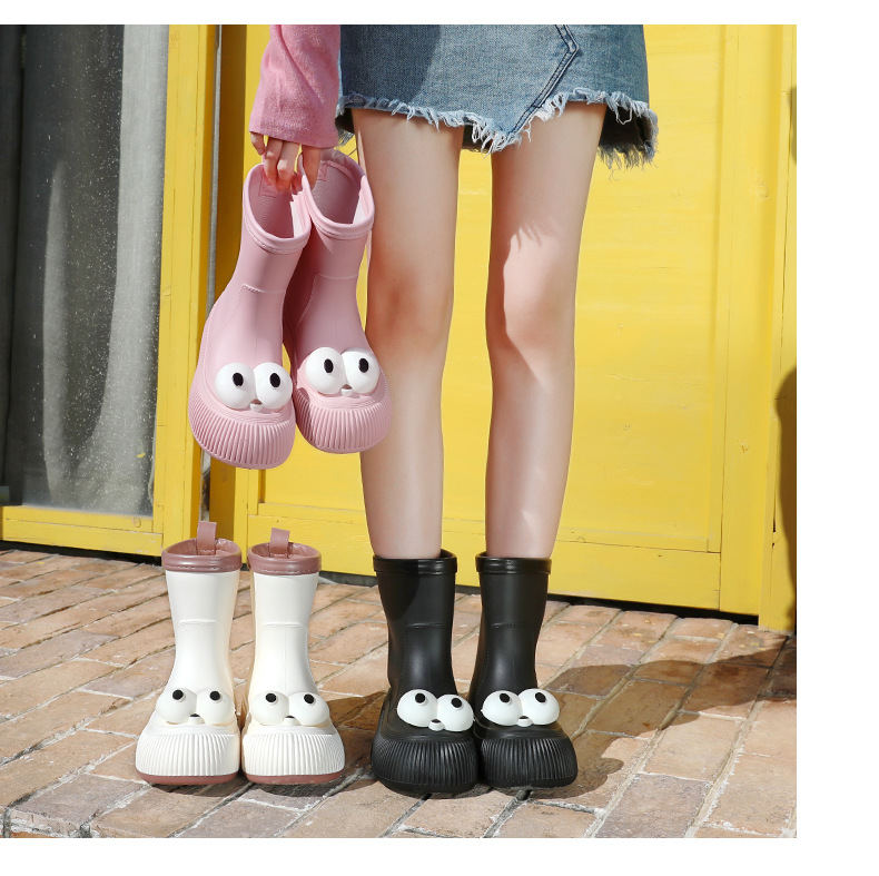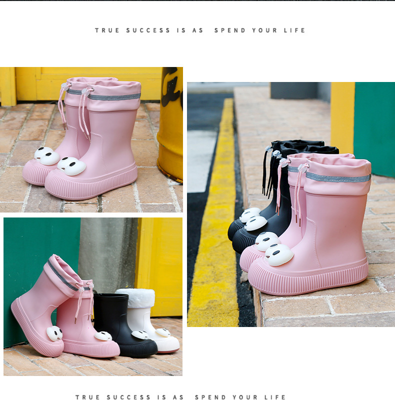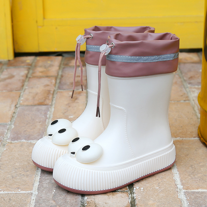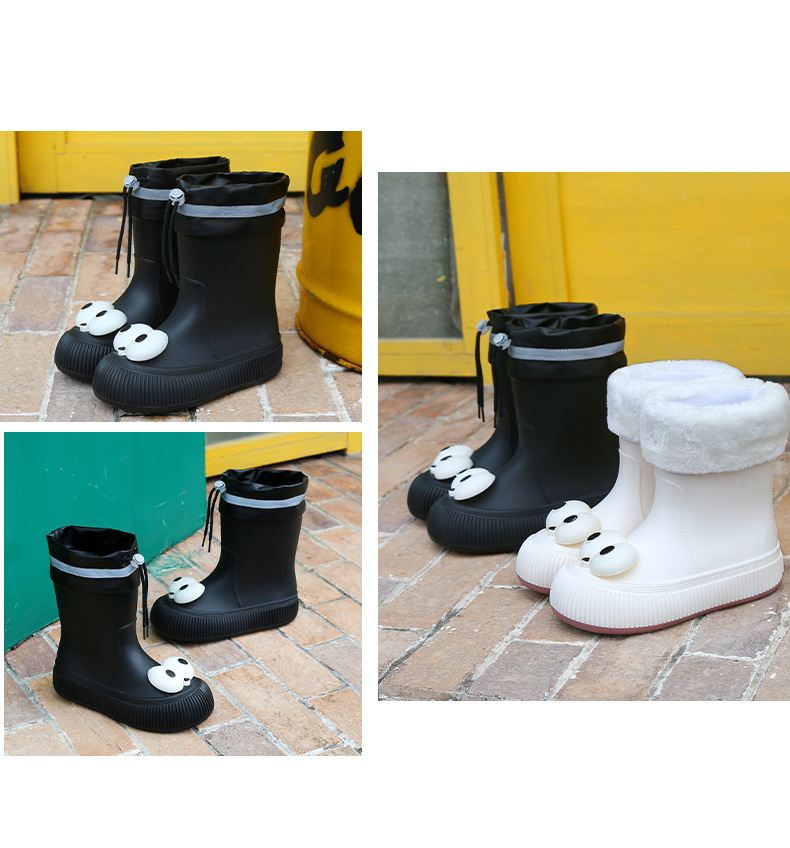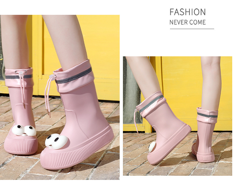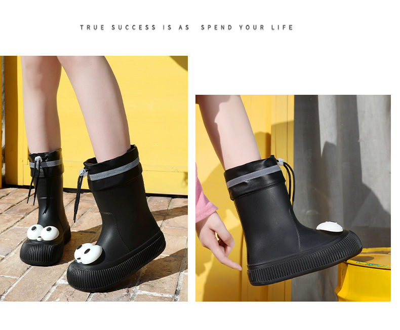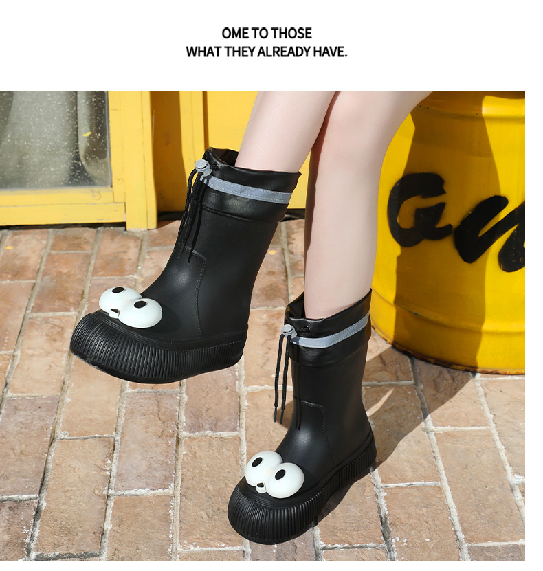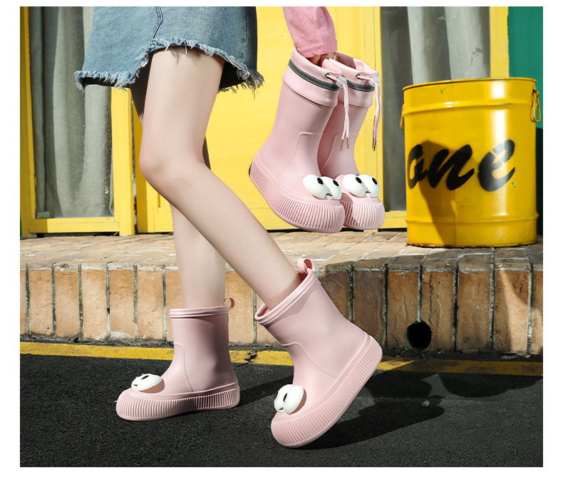 귀여운 큰 눈 비 신발 비 슬립 스노우 부츠 여성의 겨울 따뜻한 기모 중간 부츠 동북 면화 물 신발 코르셋 장화
