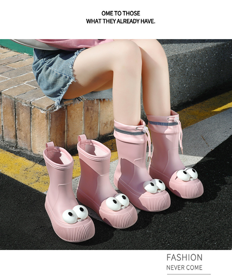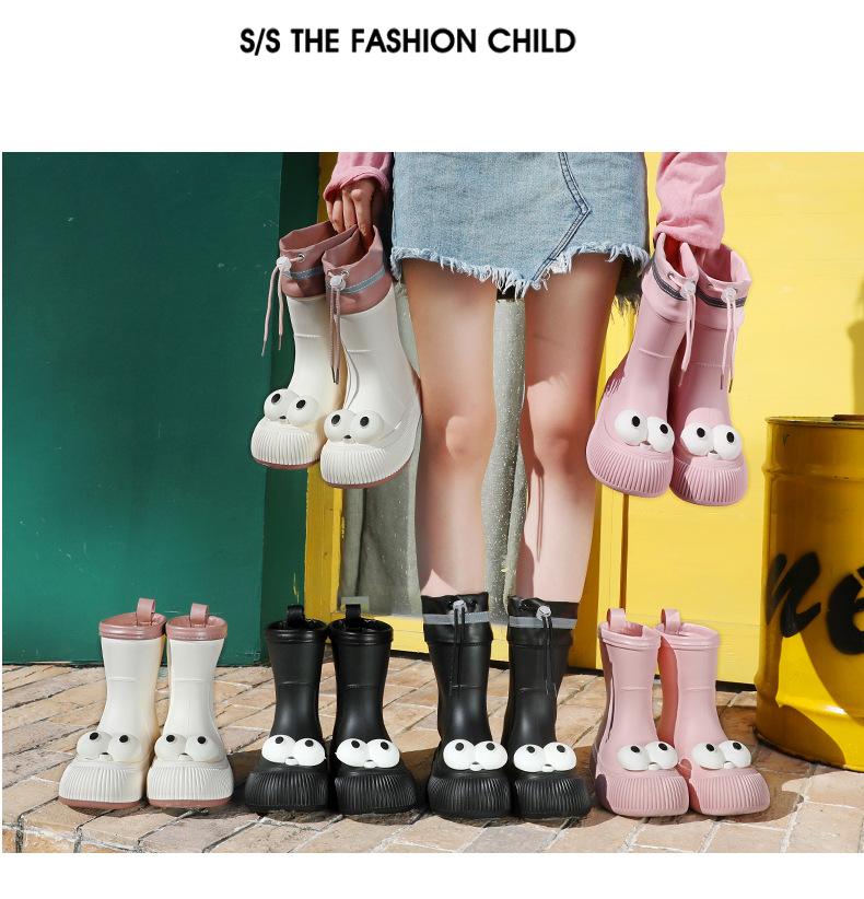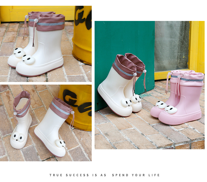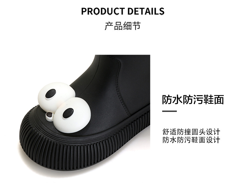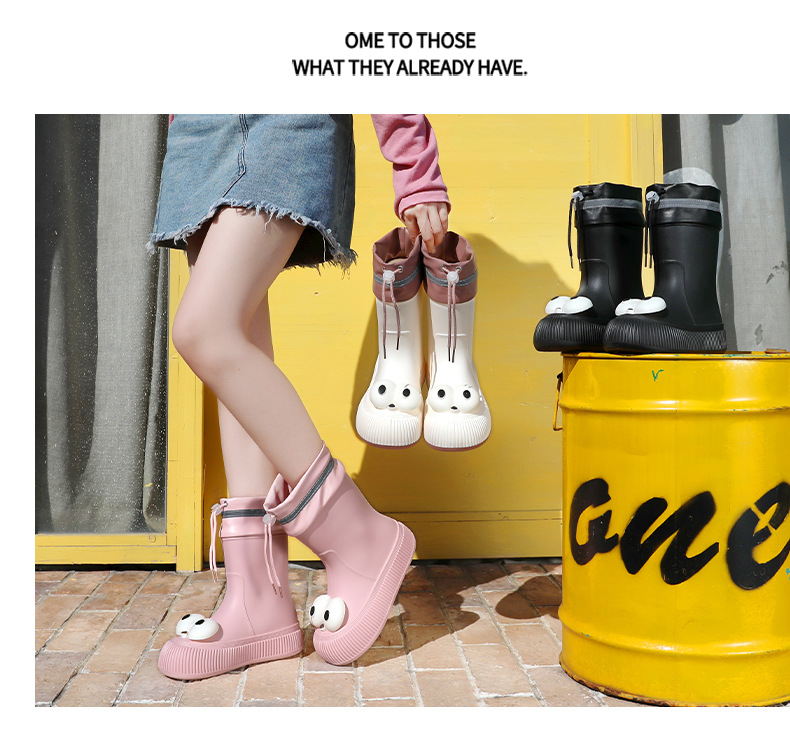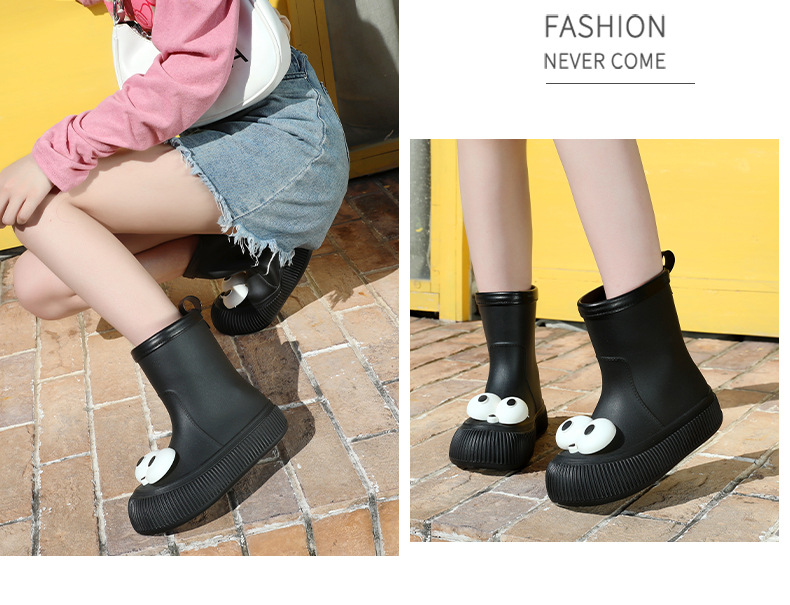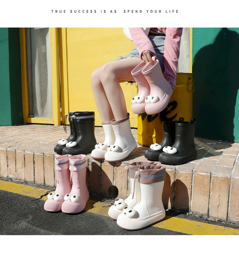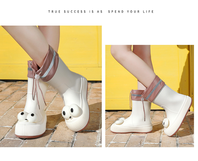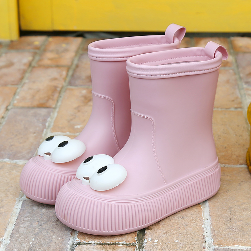 귀여운 큰 눈 비 신발 비 슬립 스노우 부츠 여성의 겨울 따뜻한 기모 중간 부츠 동북 면화 물 신발 코르셋 장화