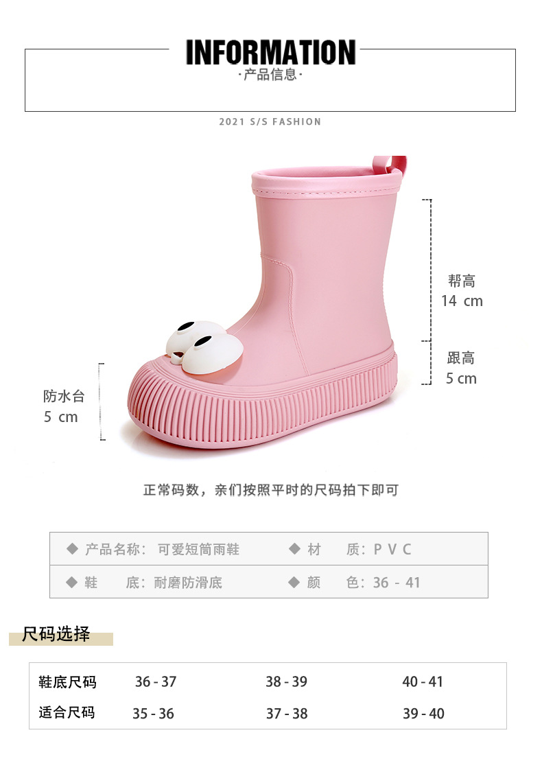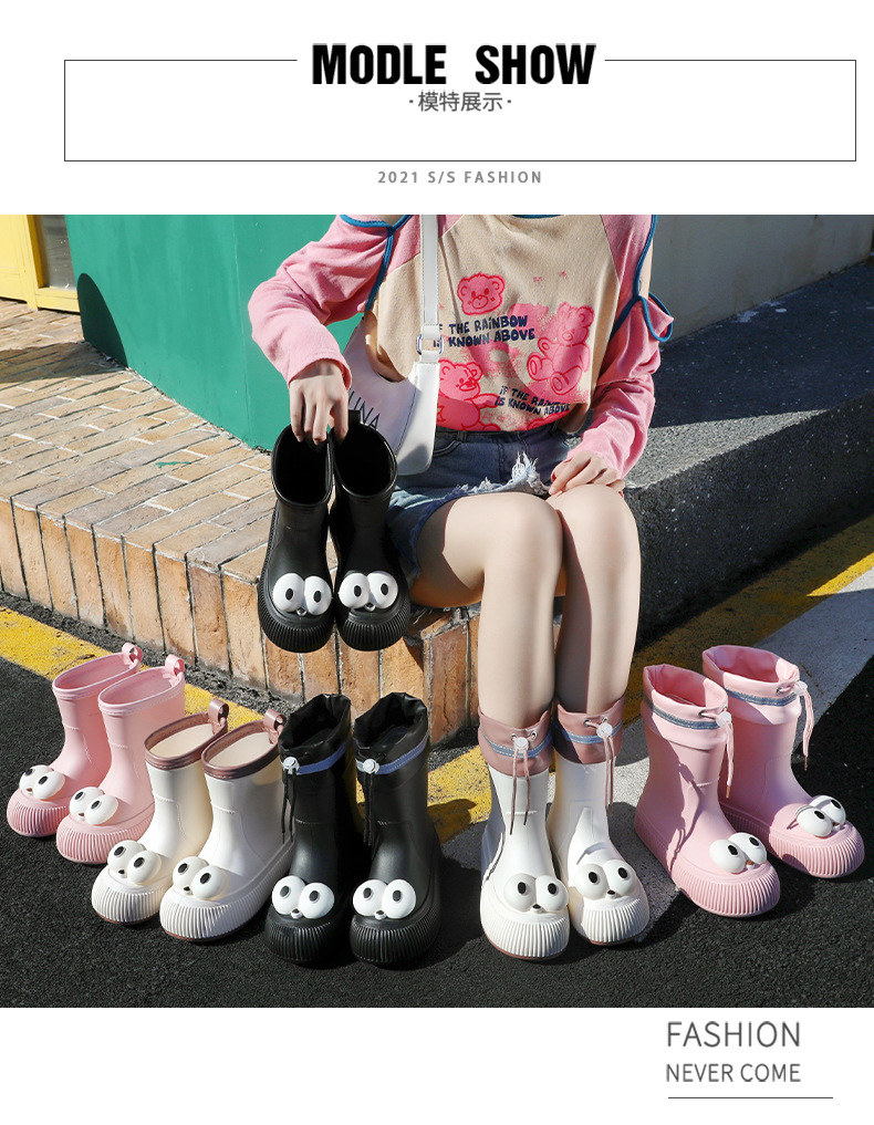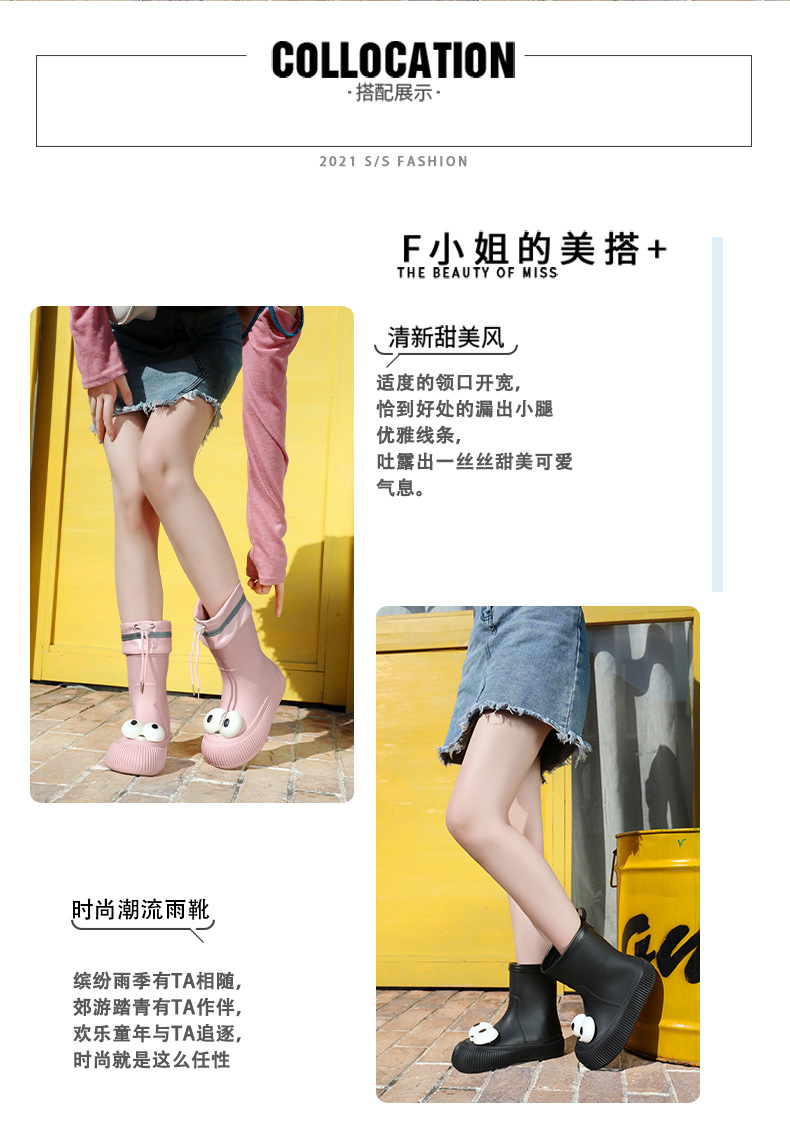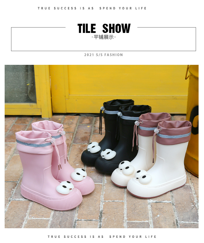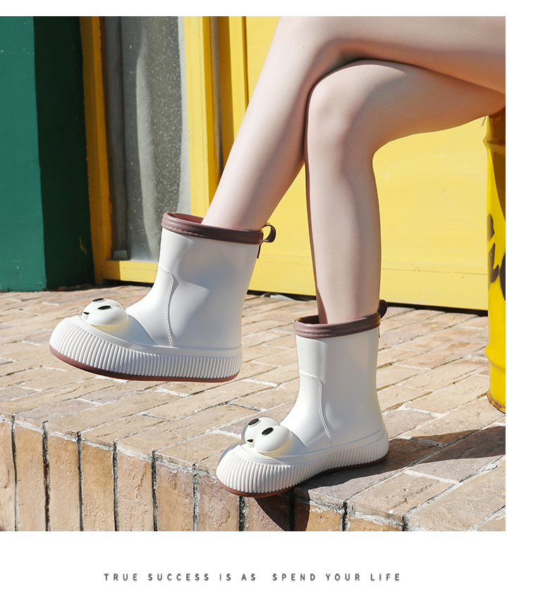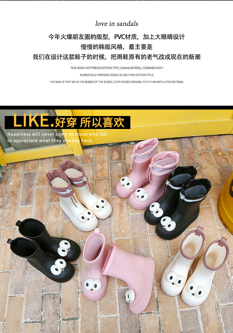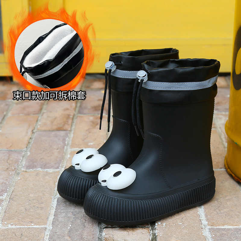 귀여운 큰 눈 비 신발 비 슬립 스노우 부츠 여성의 겨울 따뜻한 기모 중간 부츠 동북 면화 물 신발 코르셋 장화