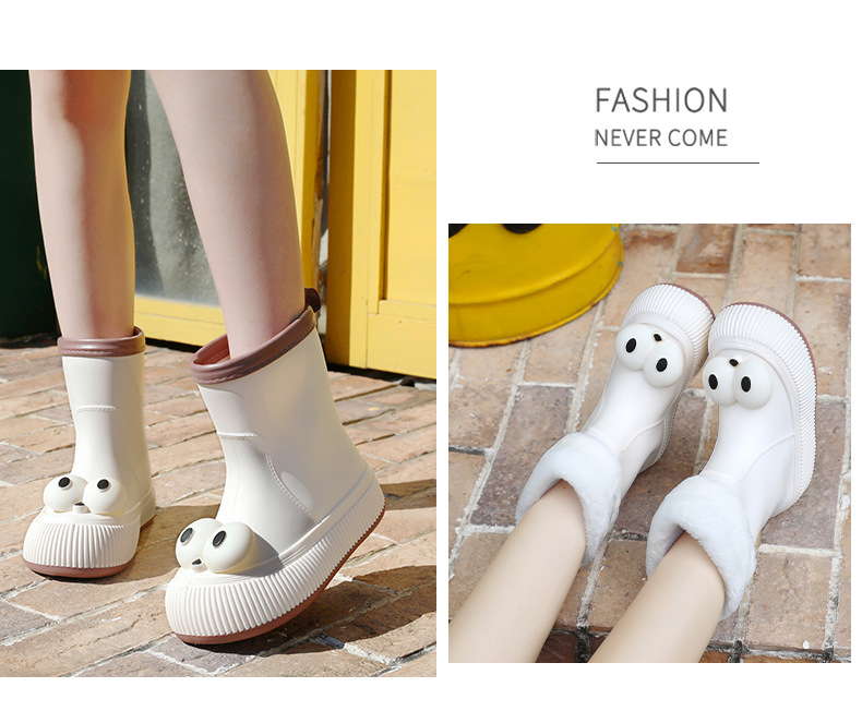 귀여운 큰 눈 비 신발 비 슬립 스노우 부츠 여성의 겨울 따뜻한 기모 중간 부츠 동북 면화 물 신발 코르셋 장화스토어 가기