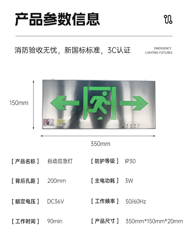 안톤 안전 출구 표시기 빛 스테인리스 안전 표시등 LED 플러그인 쇼핑몰 출구 표시등스토어 가기