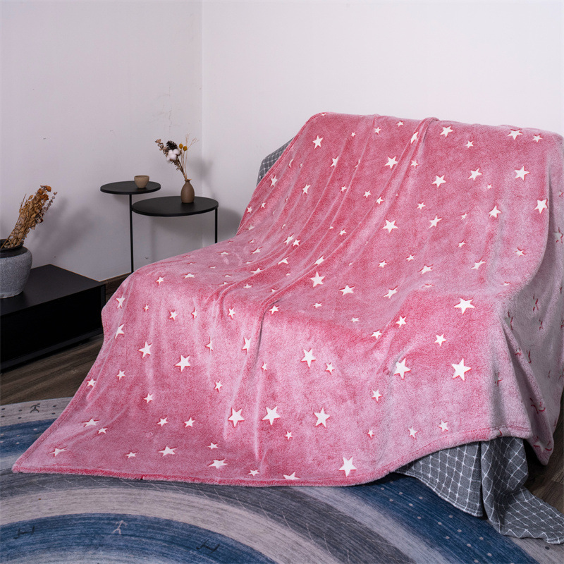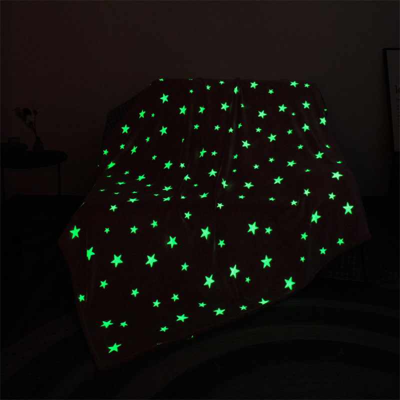 국경 간 빛나는 담요 양면 플란넬 빛나는 담요 오점 별 창조적 인 어린이 형광 담요 유치원 낮잠 담요
