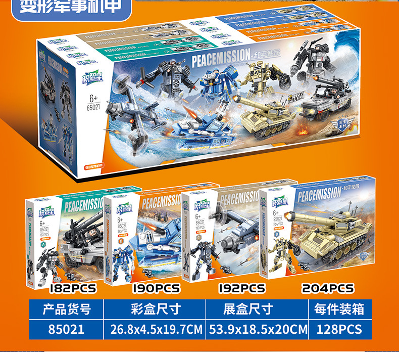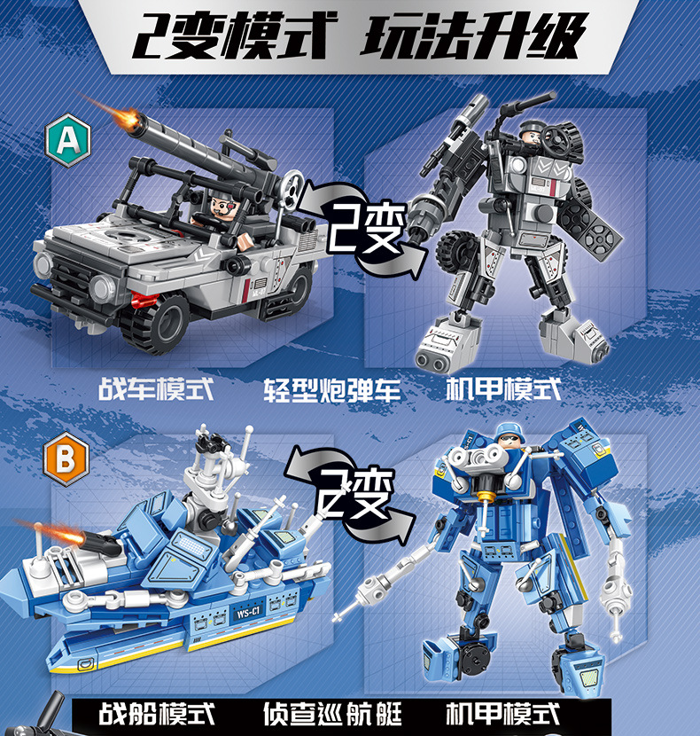 Ji Zhixing 85021 변형 군사 탱크 Mech 이중 변경 중국 빌딩 블록 교육 장난감 소년 비행 로봇스토어 가기
