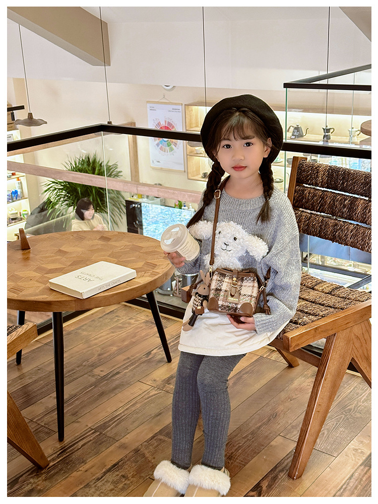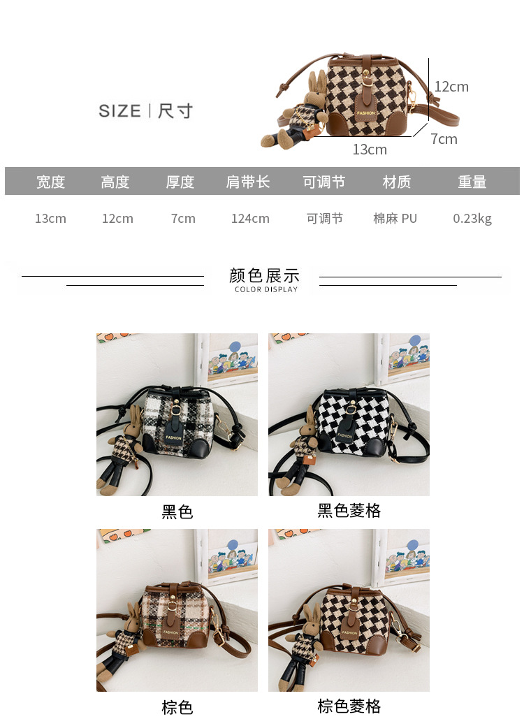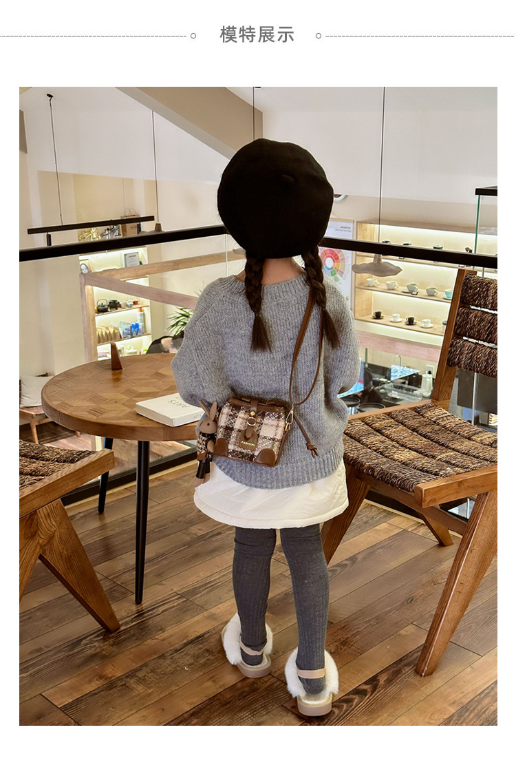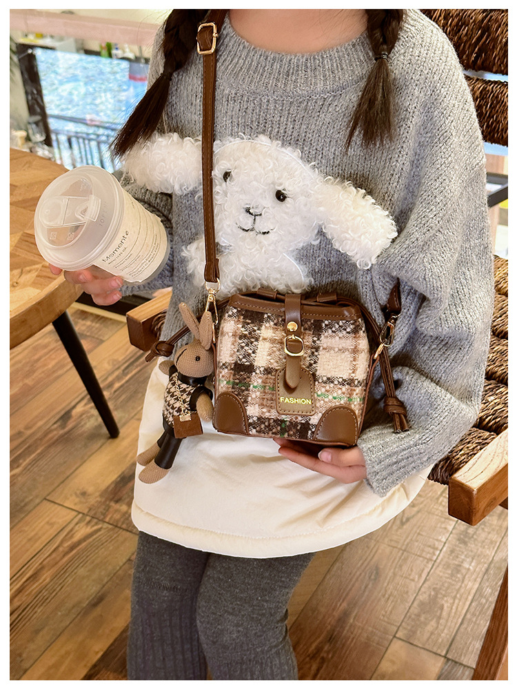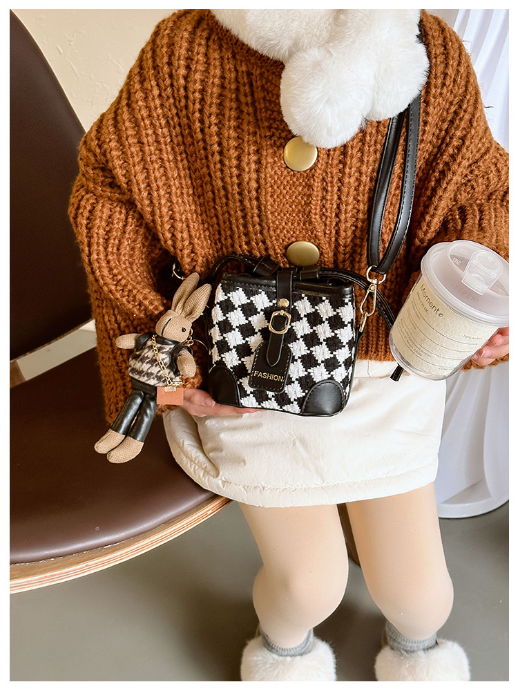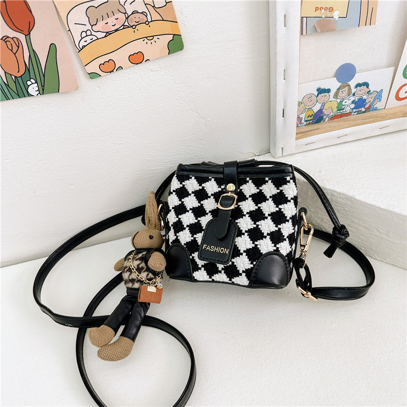 인터넷 유명 인사 어린이 메신저 가방 소녀 패션 체크 무늬 버킷 백 공주 소녀 액세서리 가방 가을과 겨울 아기 동전 지갑스토어 가기