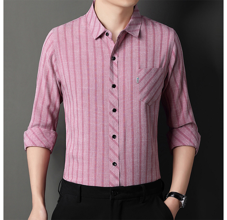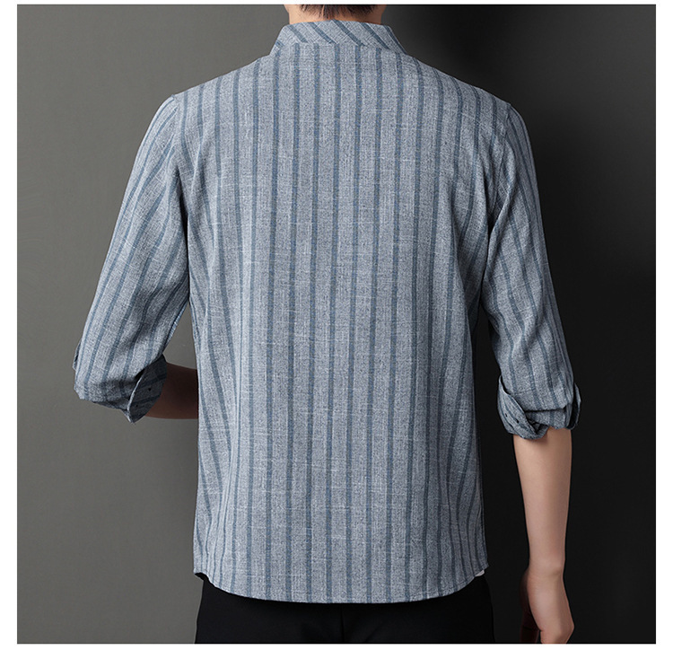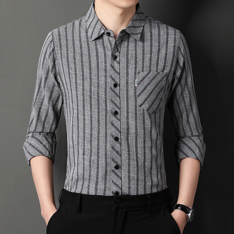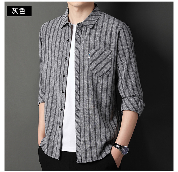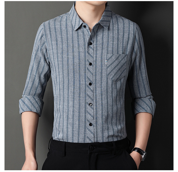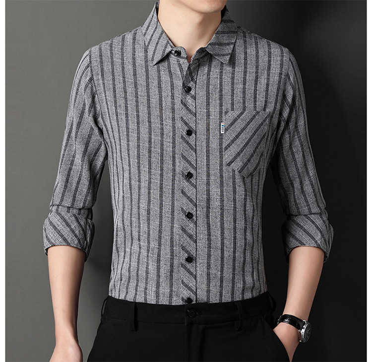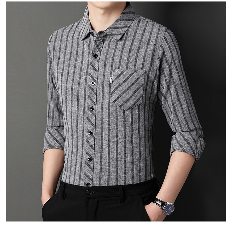 남성용 면화 및 린넨 비즈니스 캐주얼 긴팔 셔츠 기모 두꺼운 셔츠 남성 긴팔 가을과 겨울 새로운 줄무늬 셔츠스토어 가기