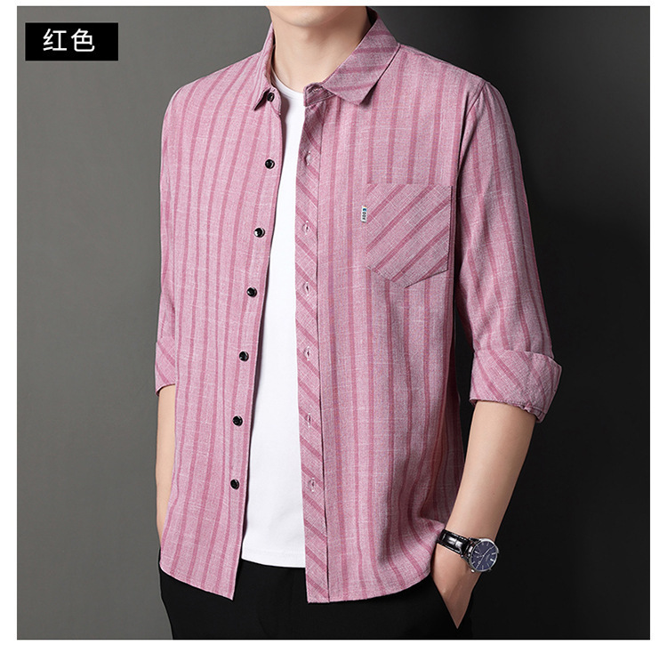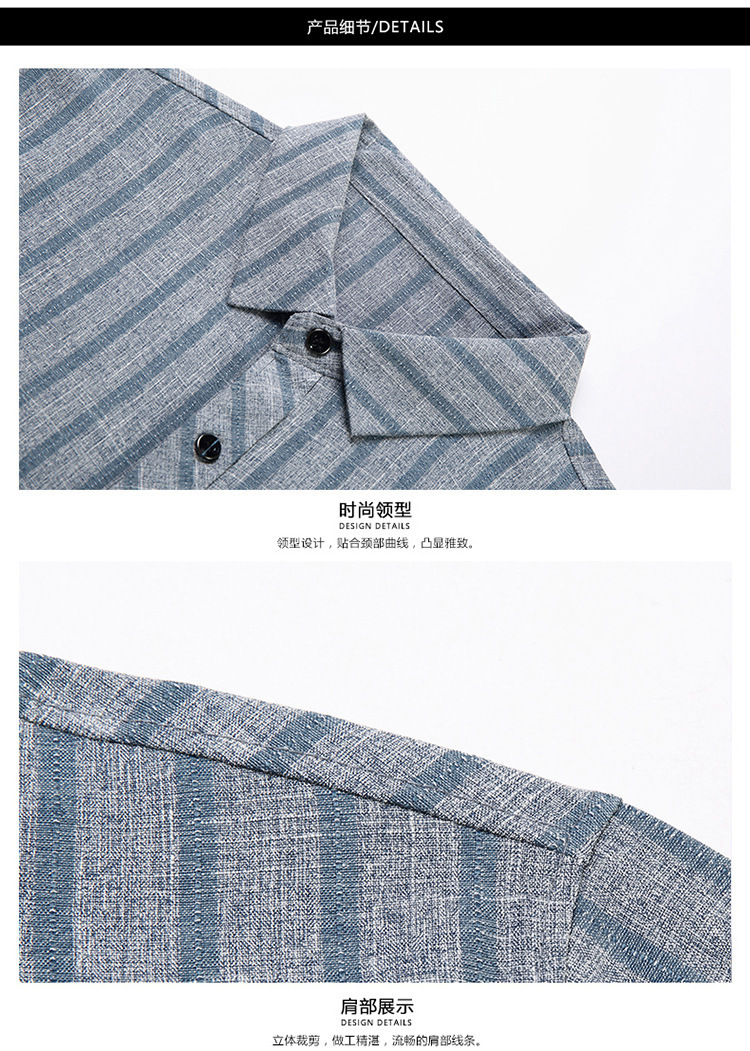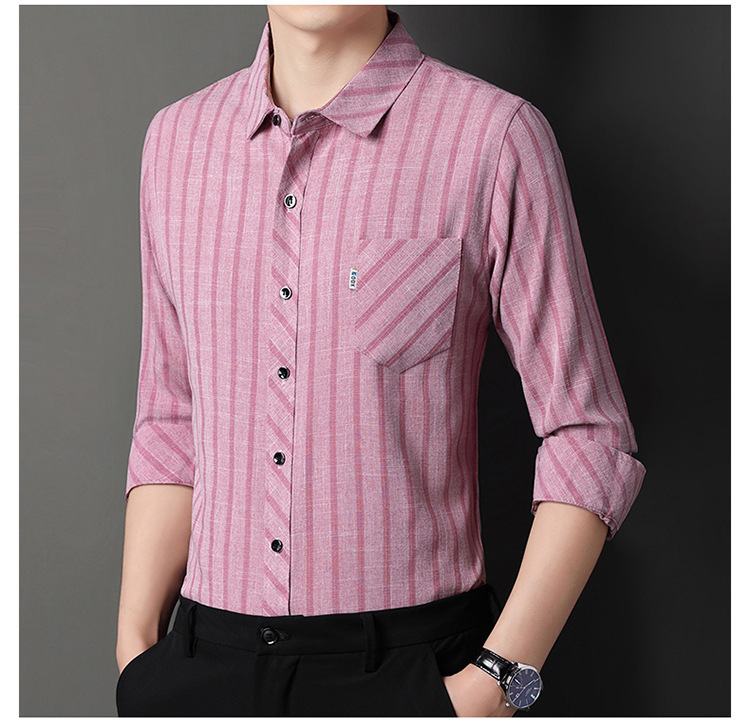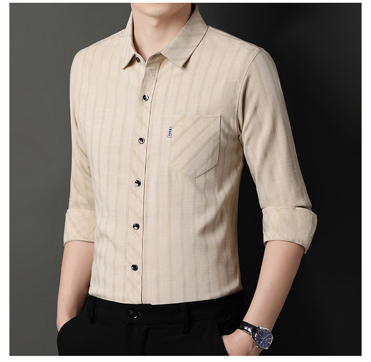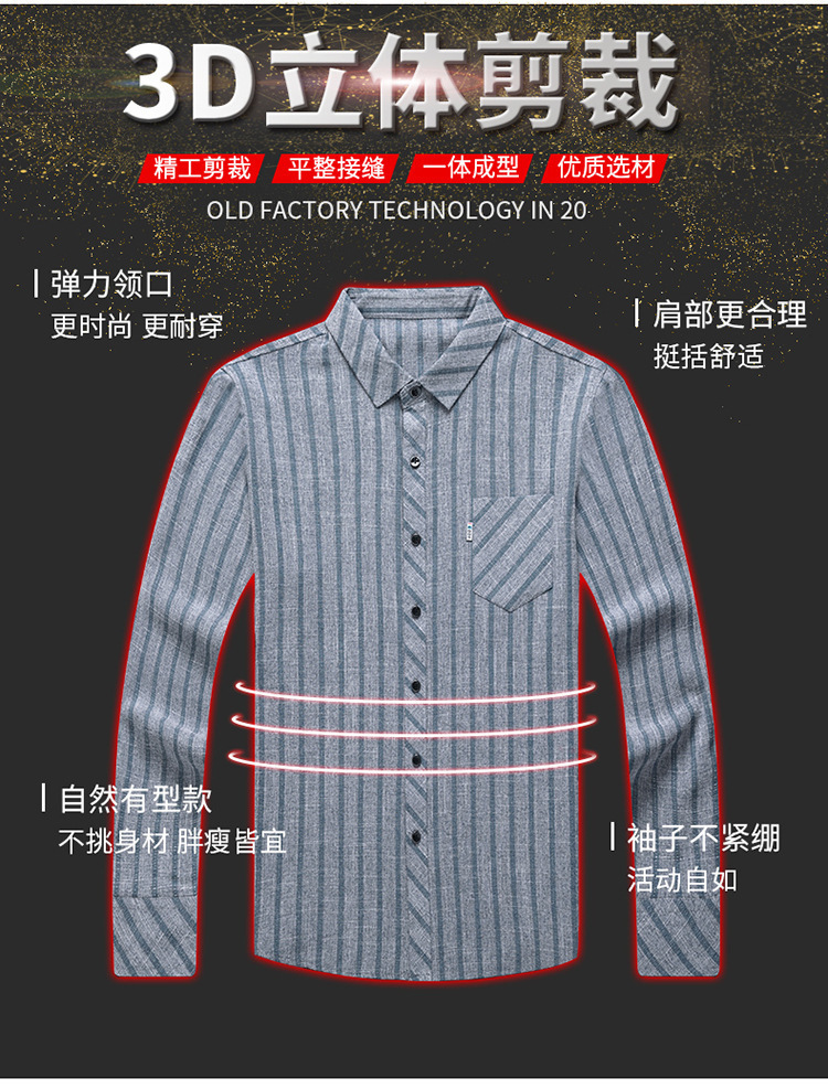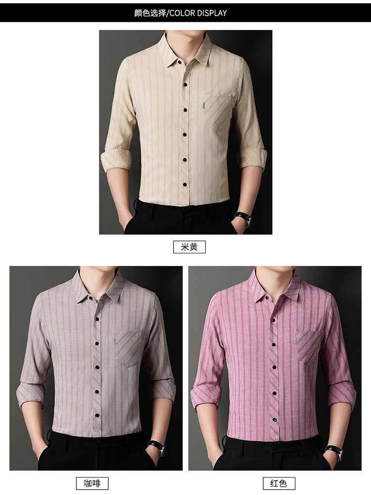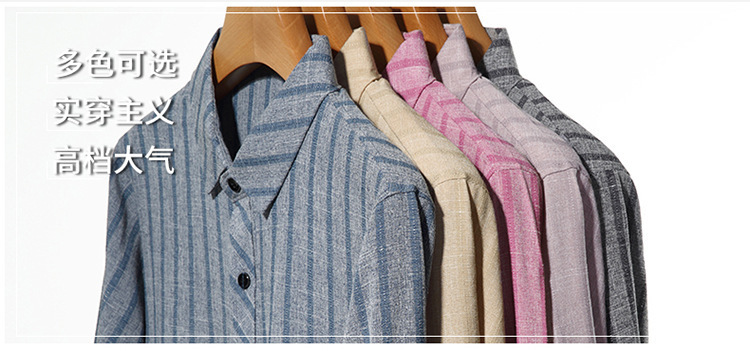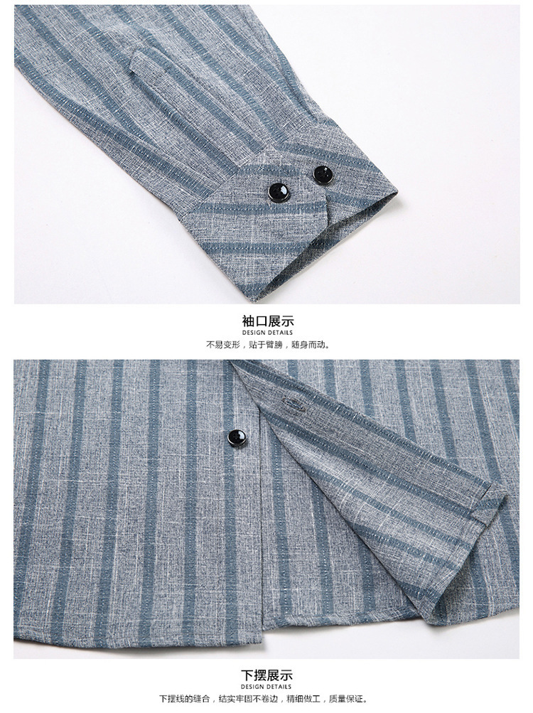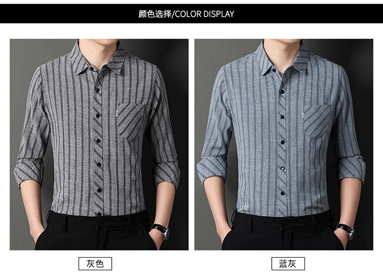 男装棉麻商务休闲长袖衬衫加绒加厚衬衫男长袖秋冬季新款条纹衬衣